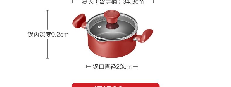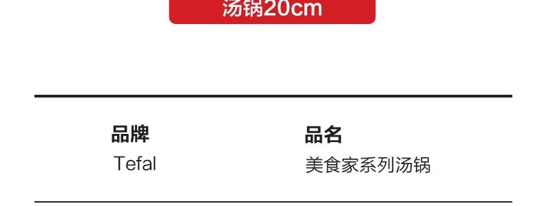商品名称:特福(TEFAL)美食家系列不粘汤锅 烈焰红 20cm+玻璃锅盖