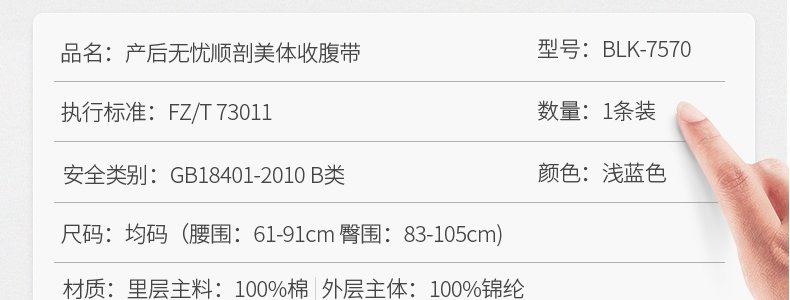 商品名称:贝莱康(baLlc)产后无忧顺剖“美体”收腹带 均码
