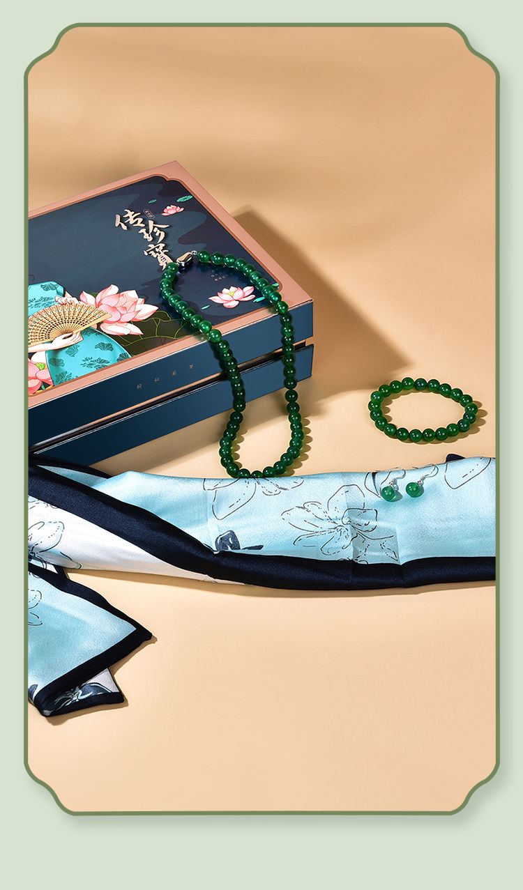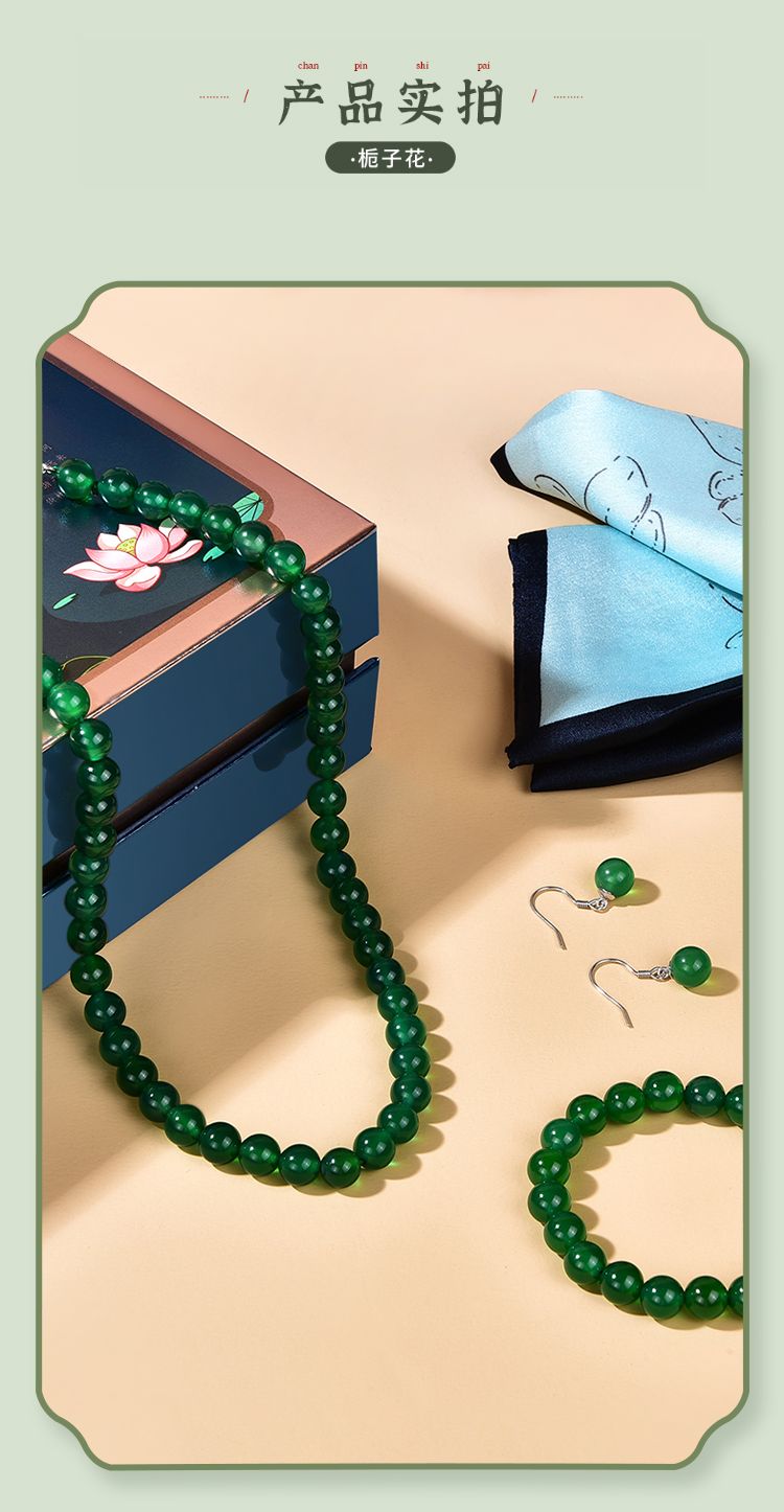 周六福S925银玉髓帝王绿套装