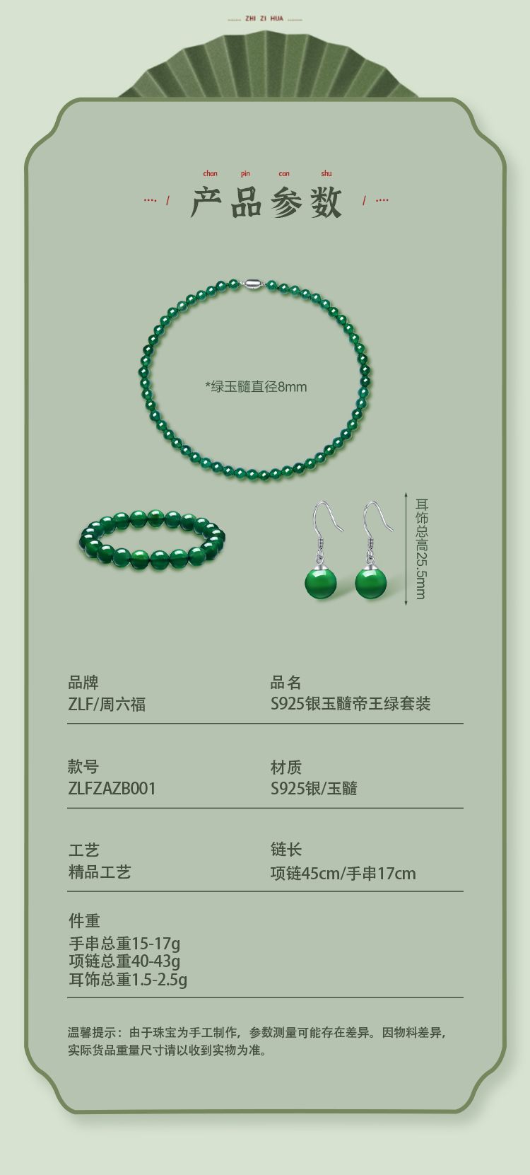 商品名称:周六福S925银玉髓帝王绿套装