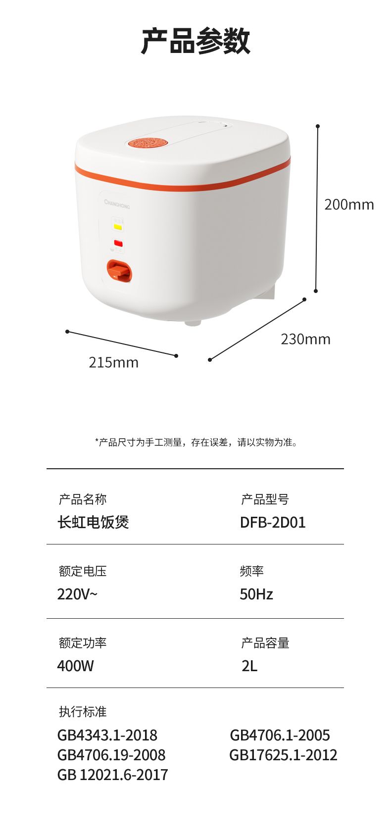 商品名称:长虹DFB-2D01电饭煲