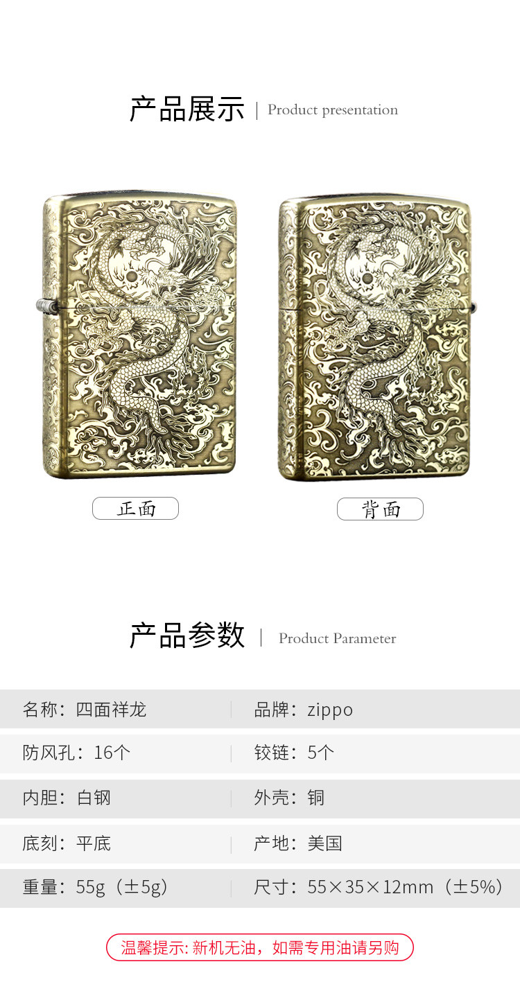 商品名称:【送礼好物】福运系列正版原装煤油火机四面祥龙送男友送老公 521694