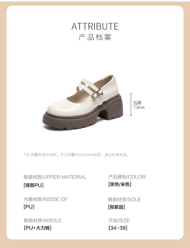 商品名称:【秒高7cm】复古百搭厚底单鞋女JK鞋女玛丽珍女鞋浅口女单鞋 932608