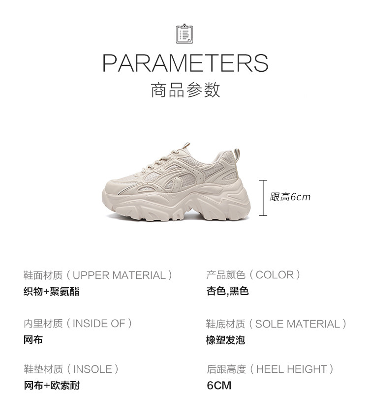 商品名称:【秒增6CM】显高老爹鞋女春秋百搭舒适运动休闲鞋子厚底鞋女鞋 605440