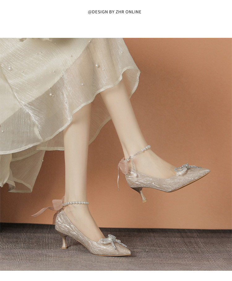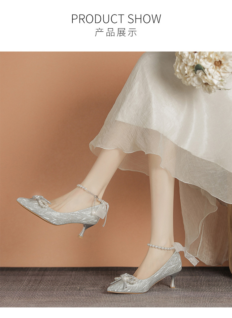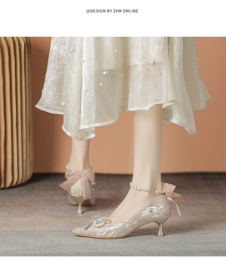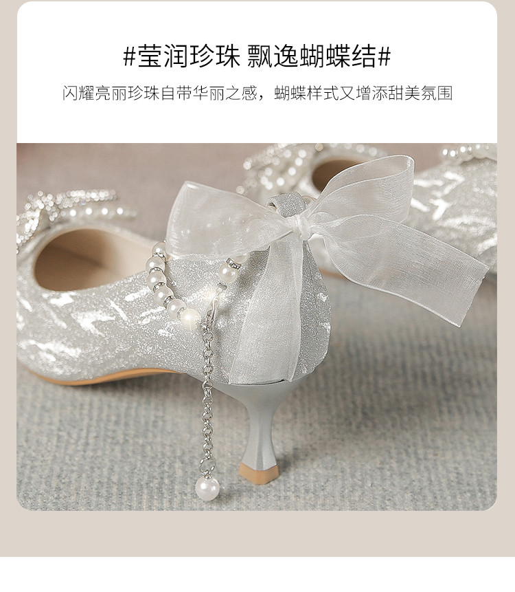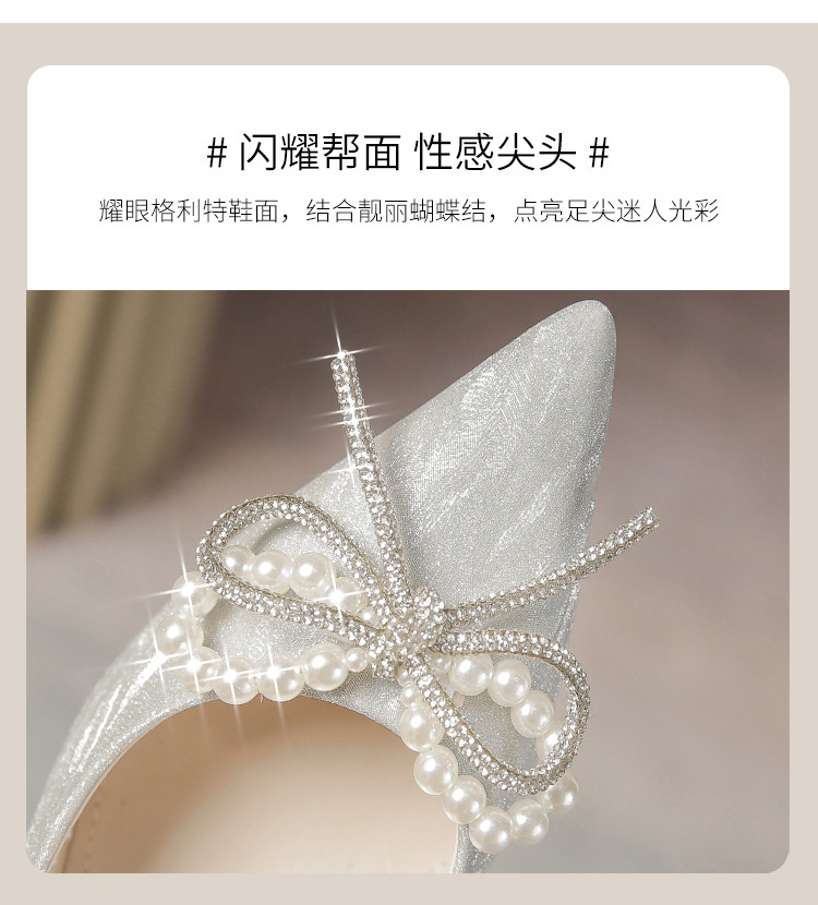 商品名称:【水钻蝴蝶结】舒适不累尖头单鞋女款春秋款婚鞋女高跟鞋女单鞋女 426496