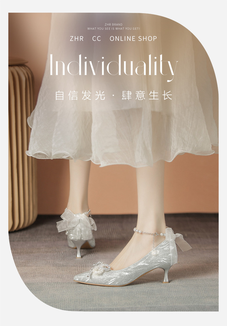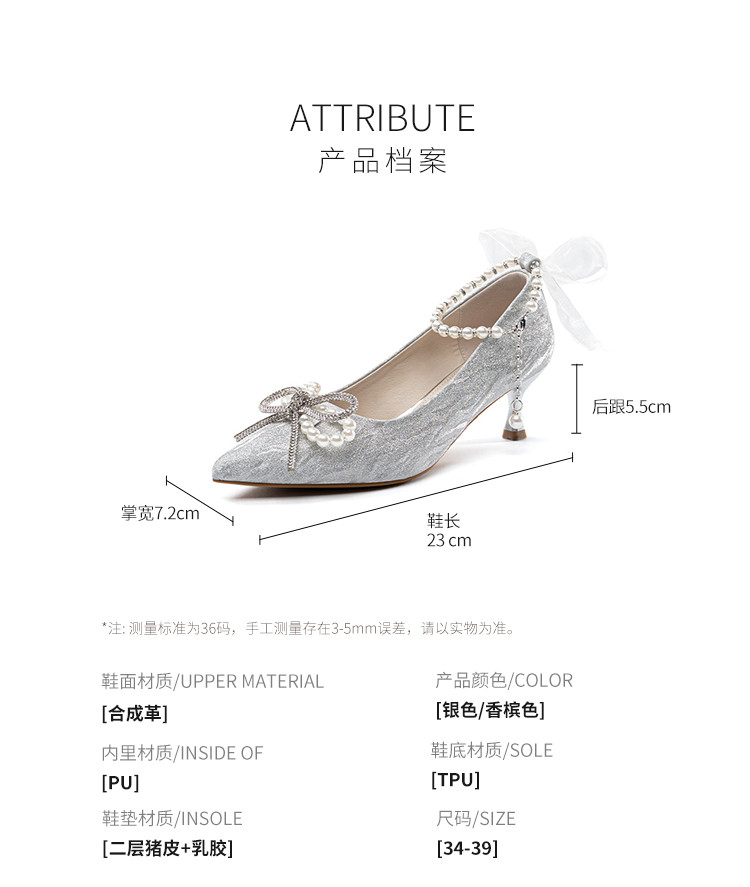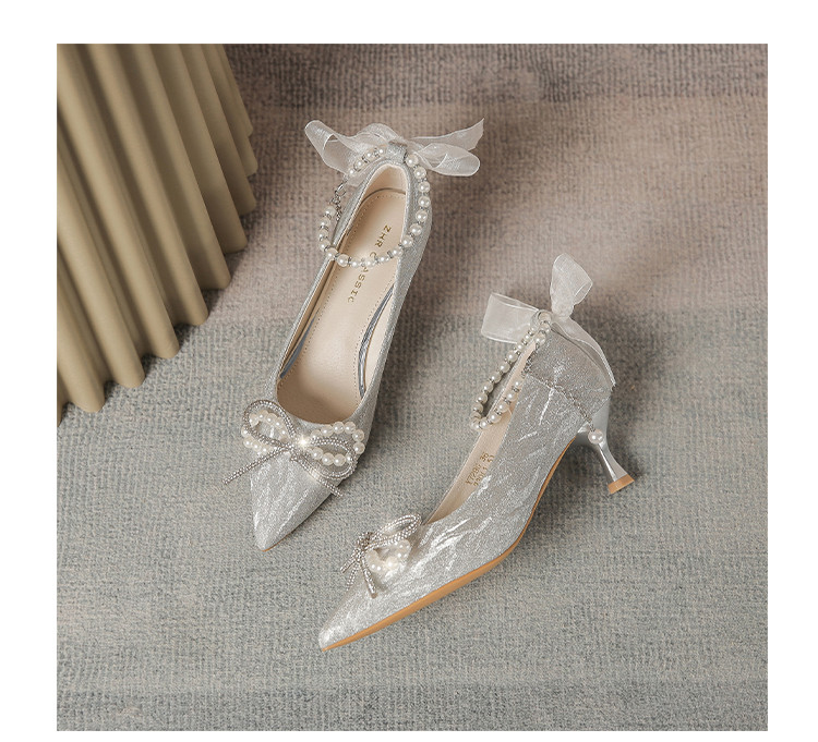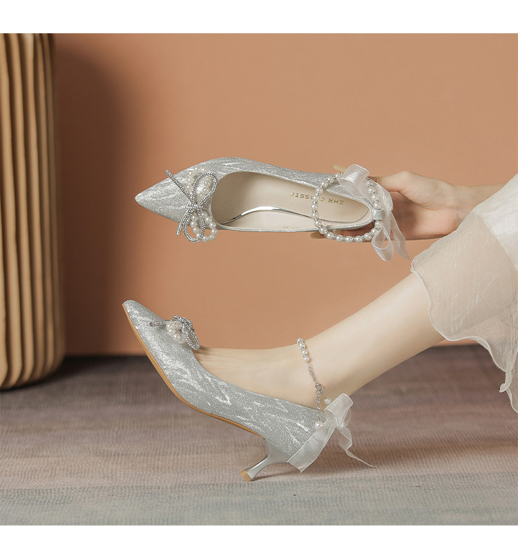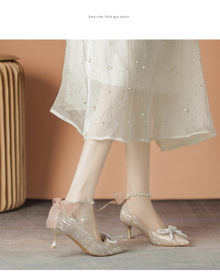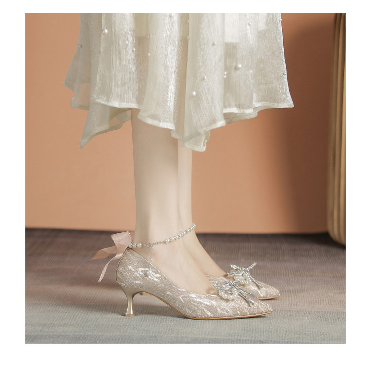 商品名称:【水钻蝴蝶结】舒适不累尖头单鞋女款春秋款婚鞋女高跟鞋女单鞋女 426496