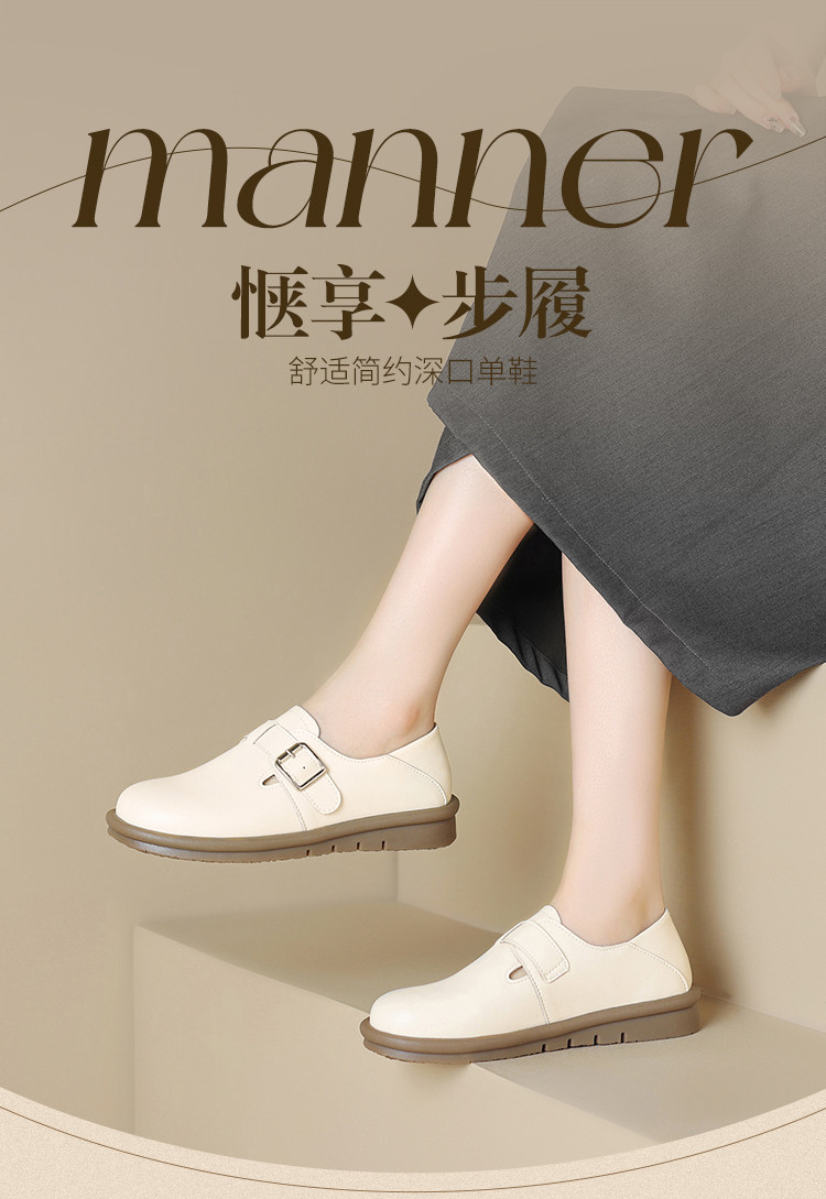商品名称:【牛剖层革】平底一脚蹬通勤女百搭休闲小皮鞋女单鞋勃肯鞋子女鞋 325632