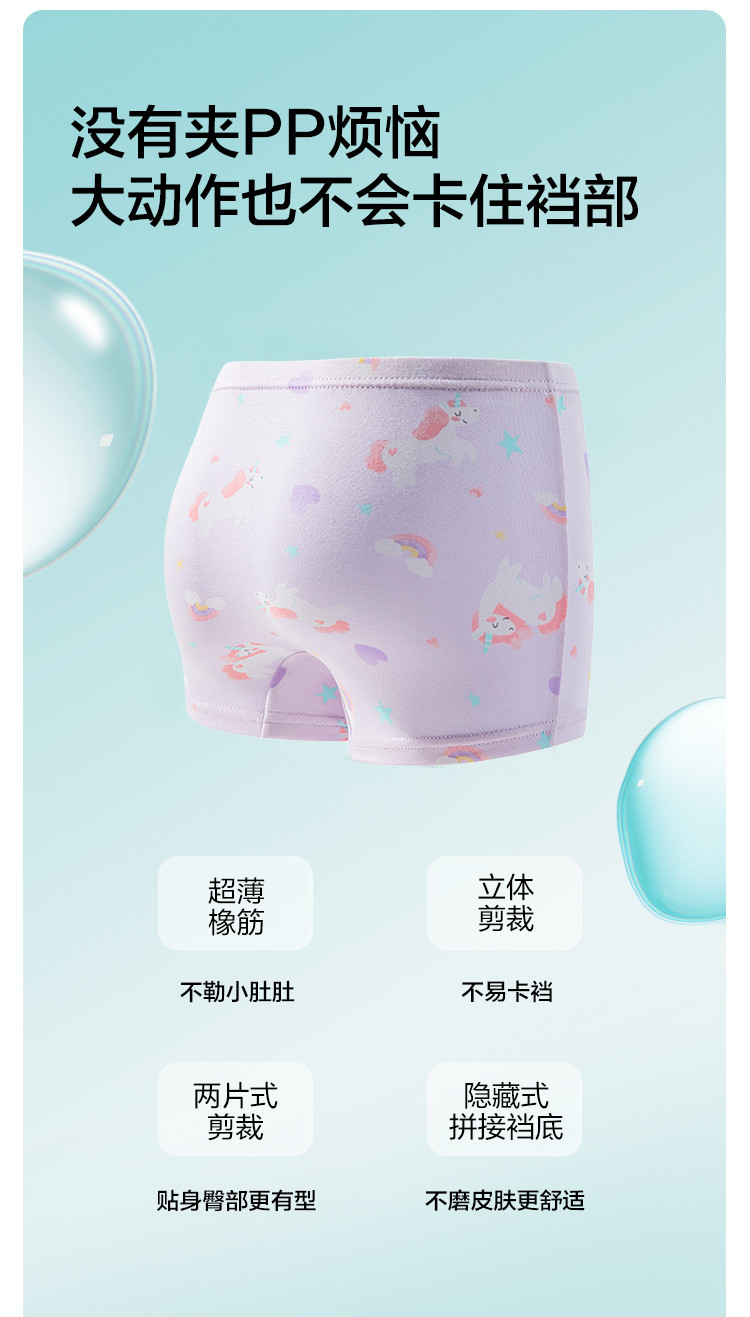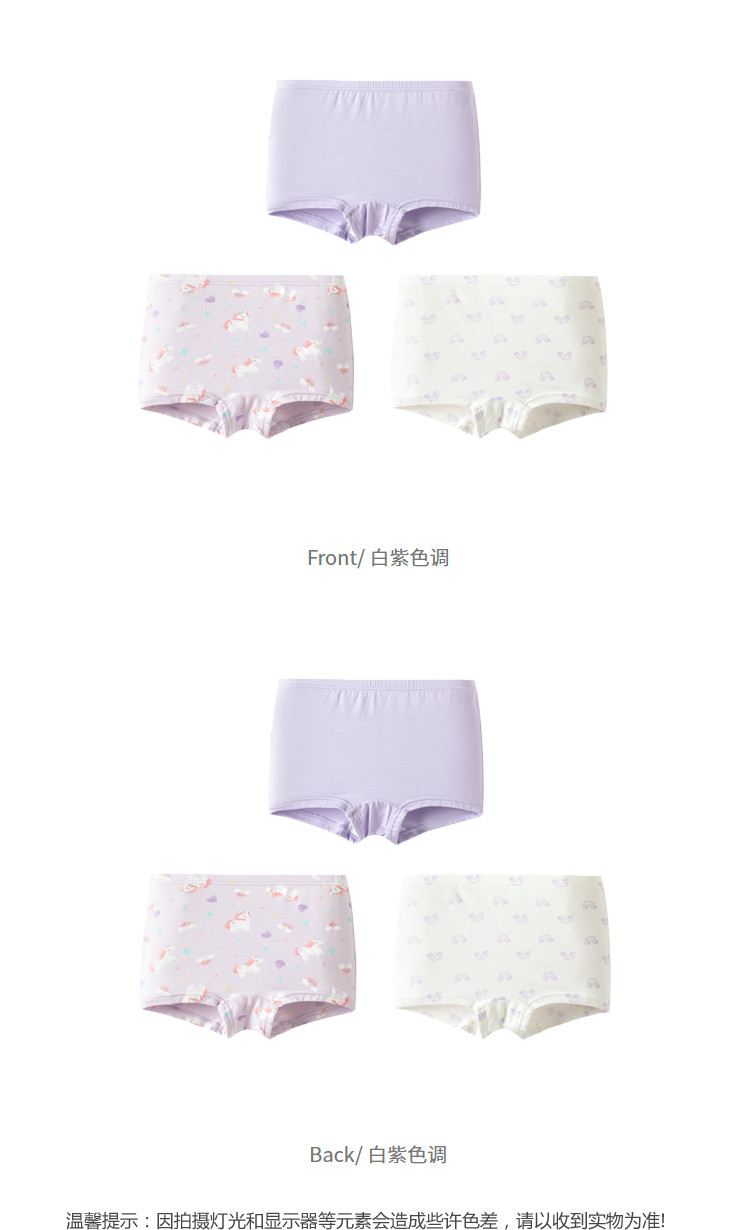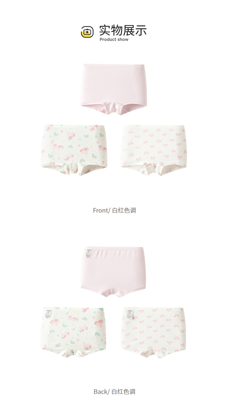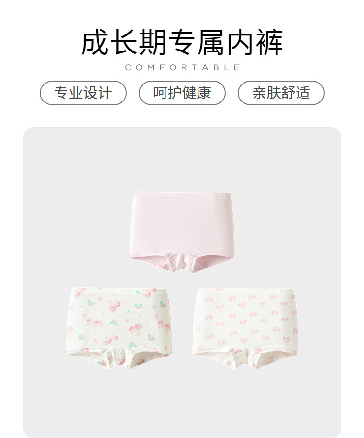 商品名称:莫代尔三条装女童平角内裤儿童四角短裤小童宝宝亲肤抑菌薄款透气 857285