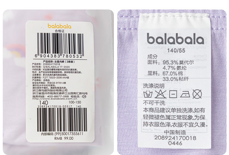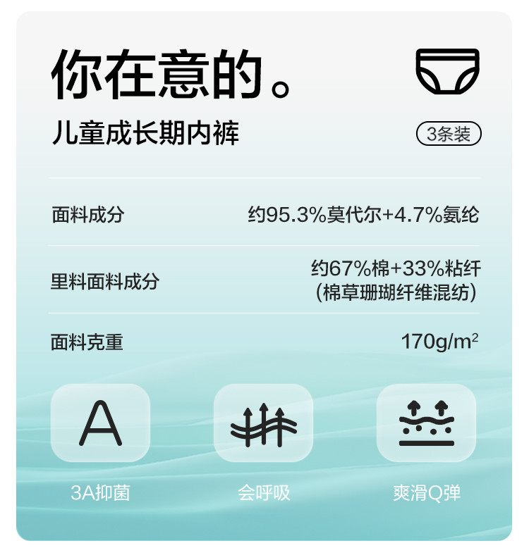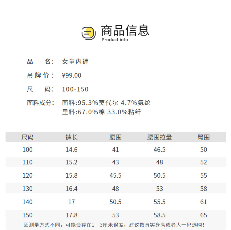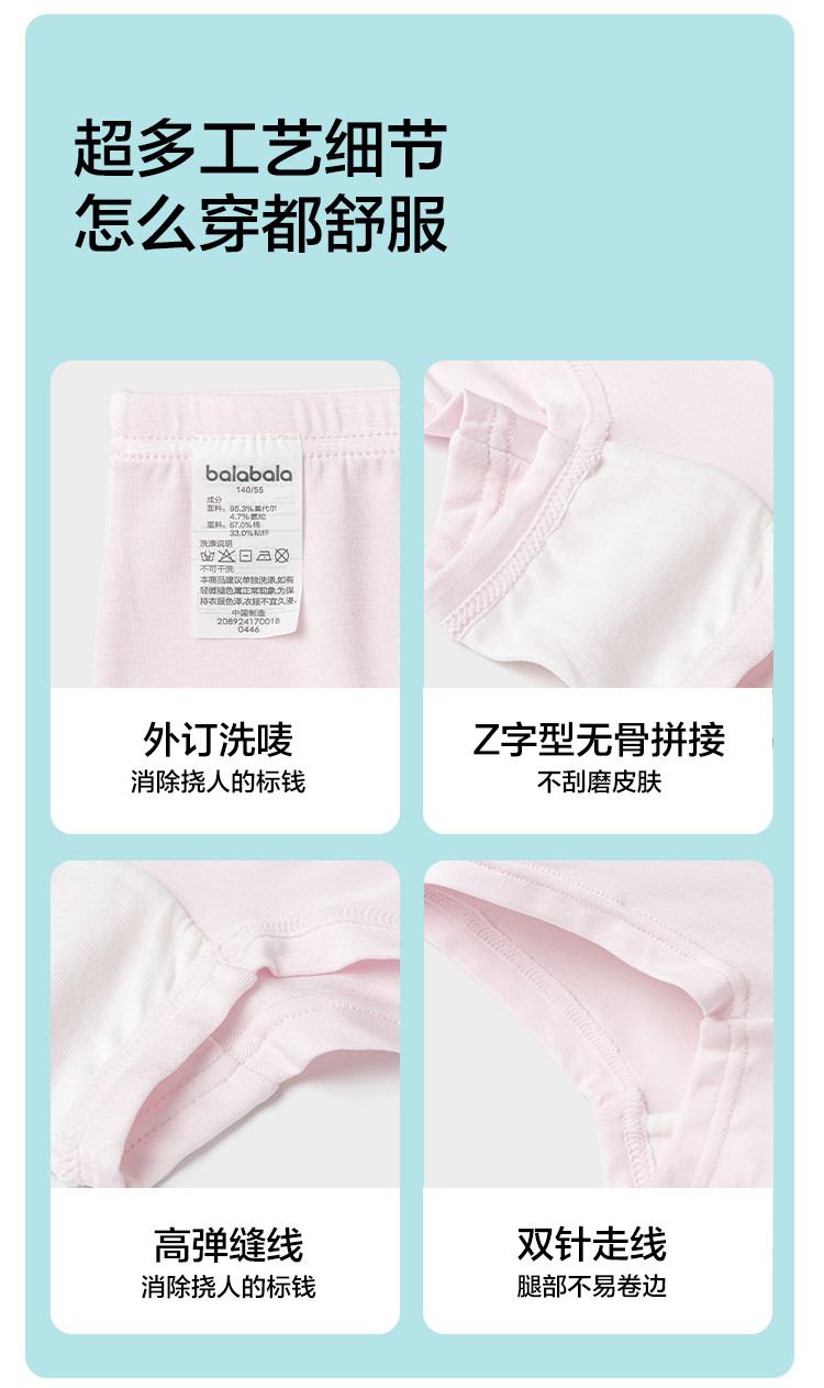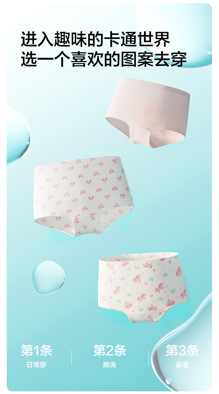 商品名称:莫代尔三条装女童平角内裤儿童四角短裤小童宝宝亲肤抑菌薄款透气 857285