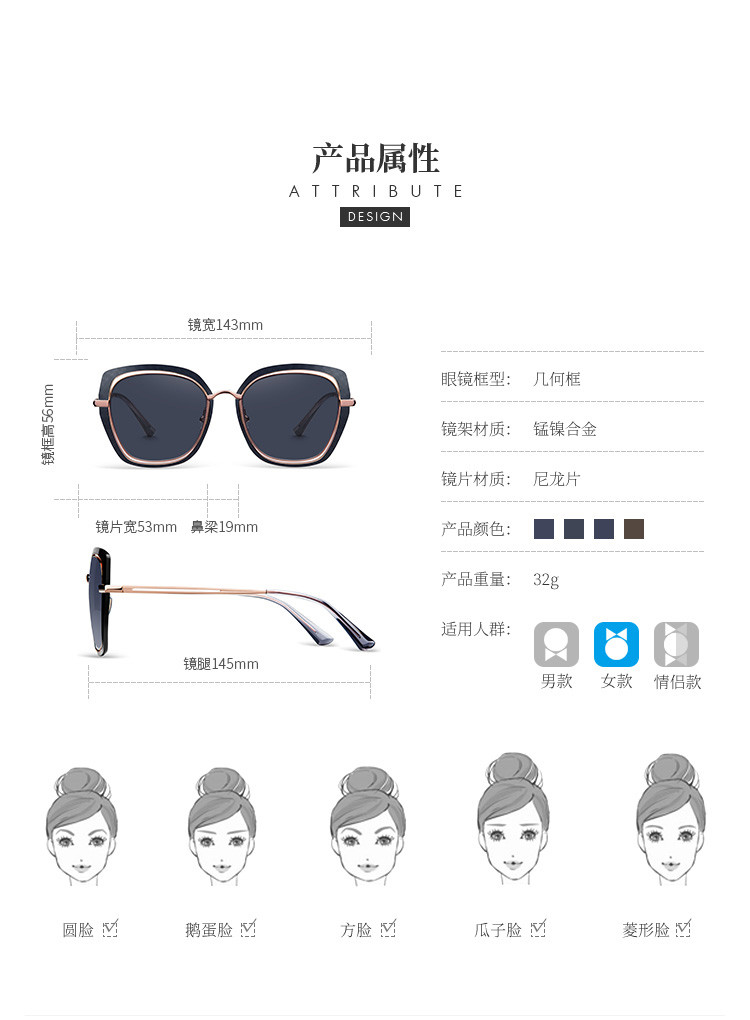 商品名称:海伦凯勒太阳镜女时尚猫眼小脸墨镜女式开车太阳镜 097371