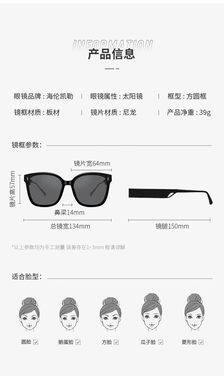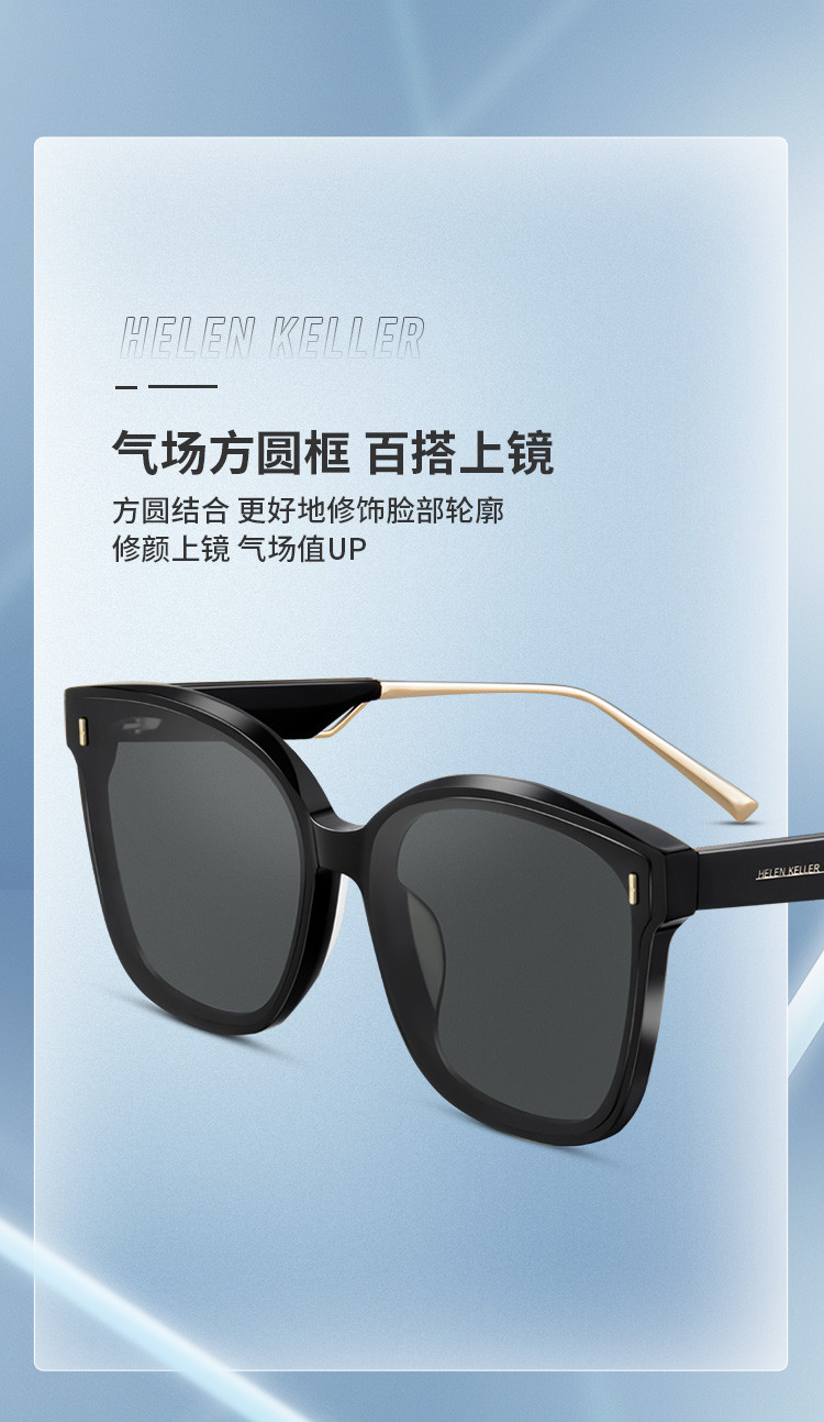 商品名称:海伦凯勒方圆框太阳眼镜女优雅大方修颜百搭墨镜防紫外线 025115