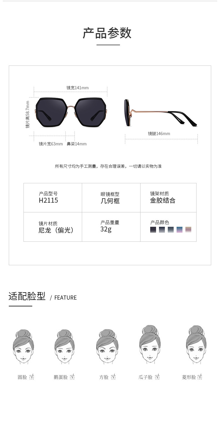 商品名称:海伦凯勒眼镜墨眼镜女大框多边形墨镜女士太阳镜女 185435
