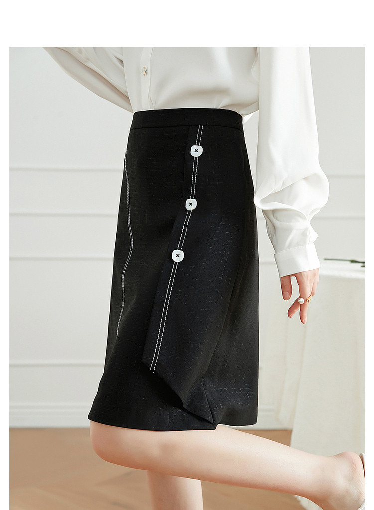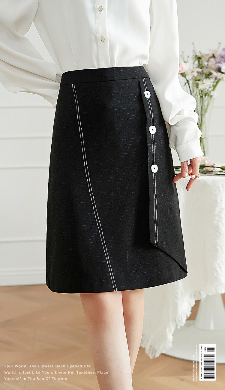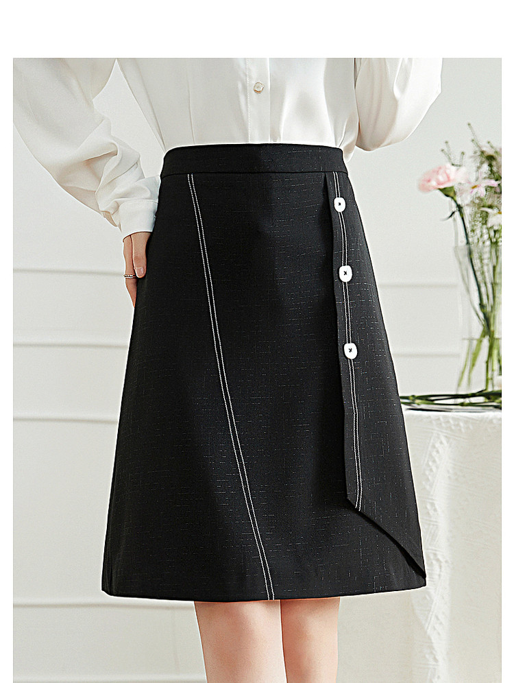 商品名称:【时髦车线】夏简约气质通勤女休闲直筒中长裙 851736