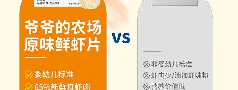 商品名称:法国 爷爷的农场(GRANDPA'S FARM)婴幼儿原味鲜虾片 38g