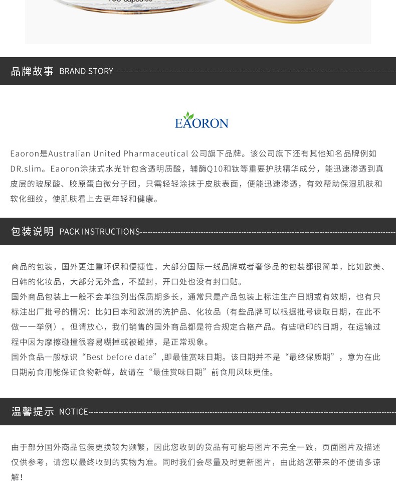 商品名称:EAORON 面部精华液涂抹式胶囊 108粒