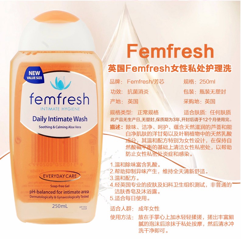 商品名称:【澳版】FEMFRESH/芳芯 女性无皂私处护理洗液 250ML