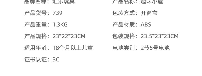 商品名称:汇乐 宝宝早教益智趣味音乐智慧屋 0-2岁
