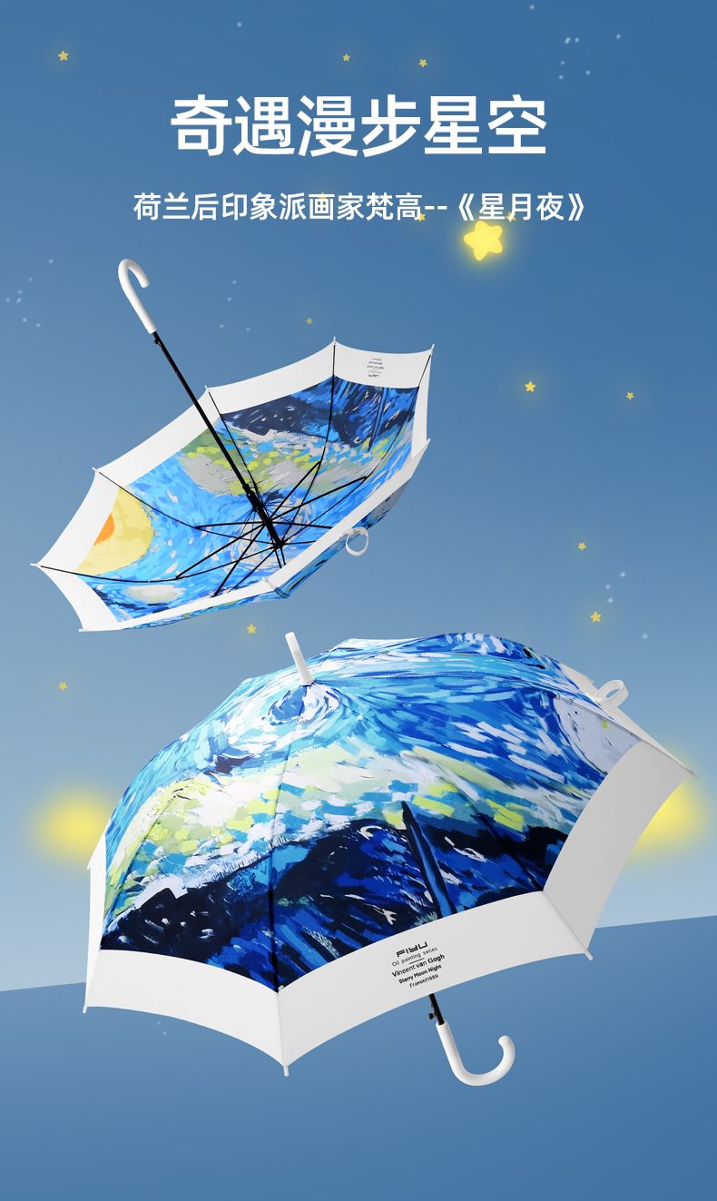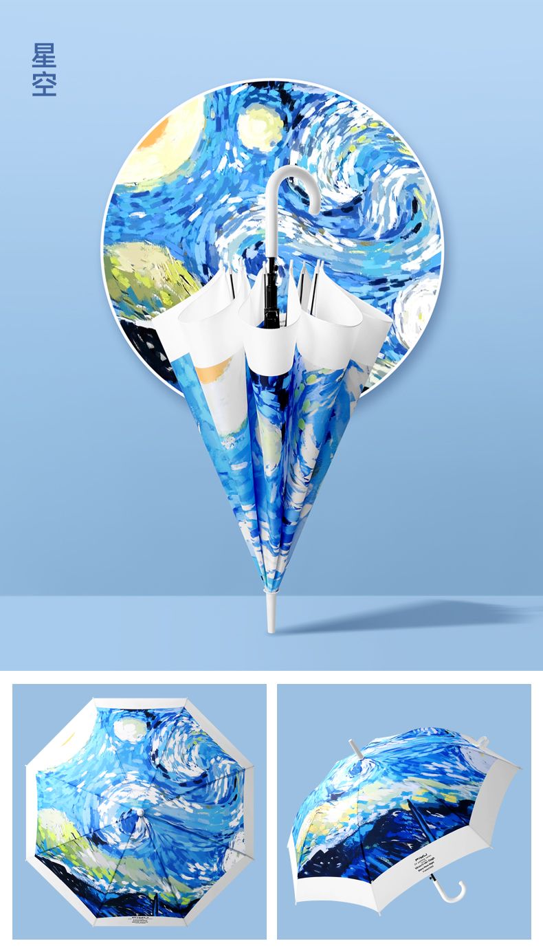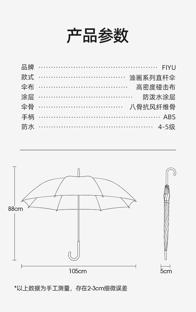 商品名称:FIYU新款油画系列长柄雨伞 半自动高颜值 牢固抗风强