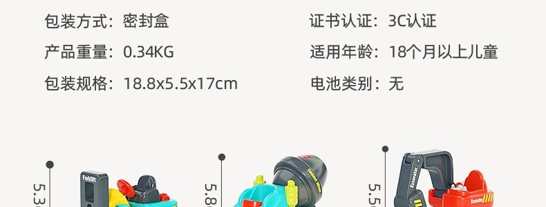 商品名称:汇乐 儿童口袋工程车 6只装