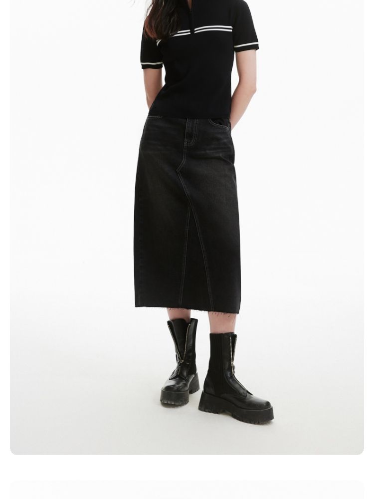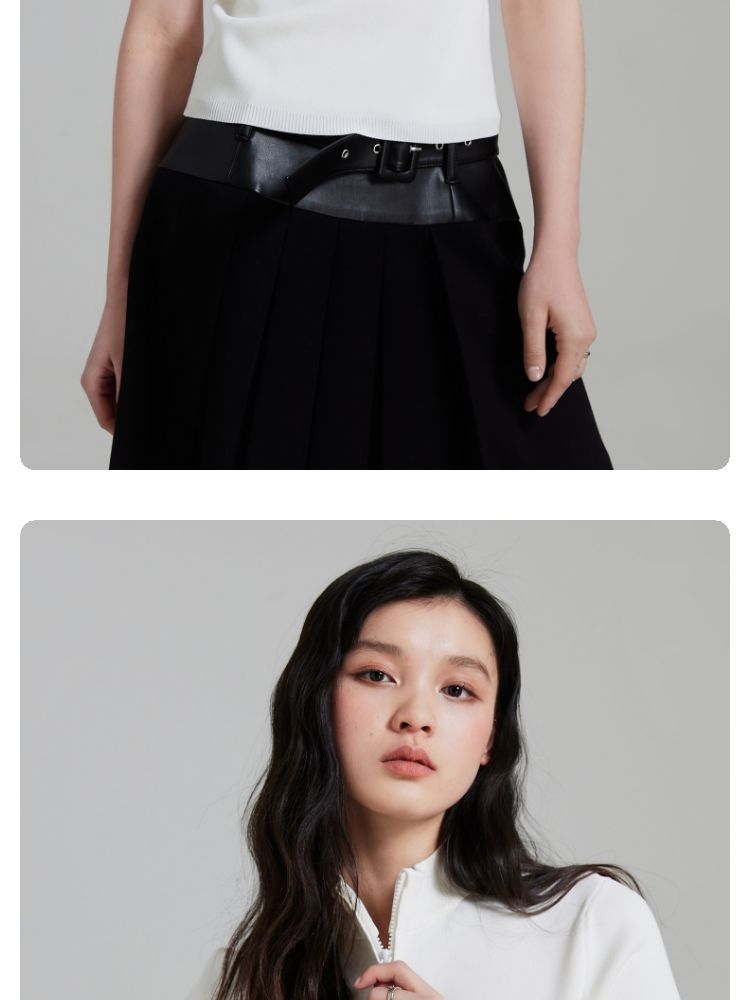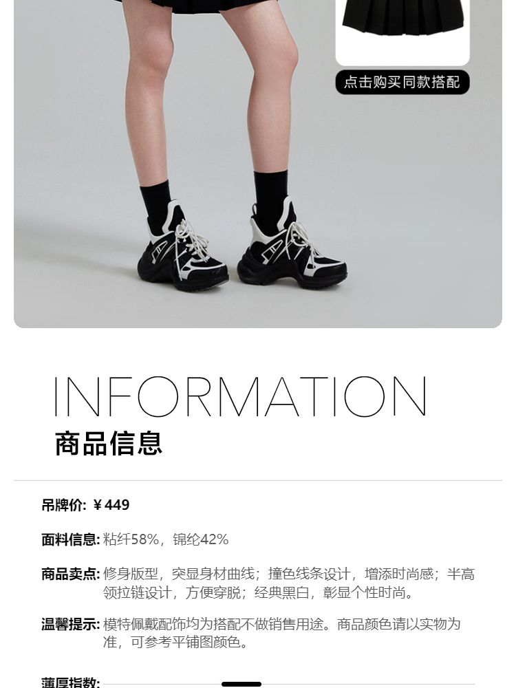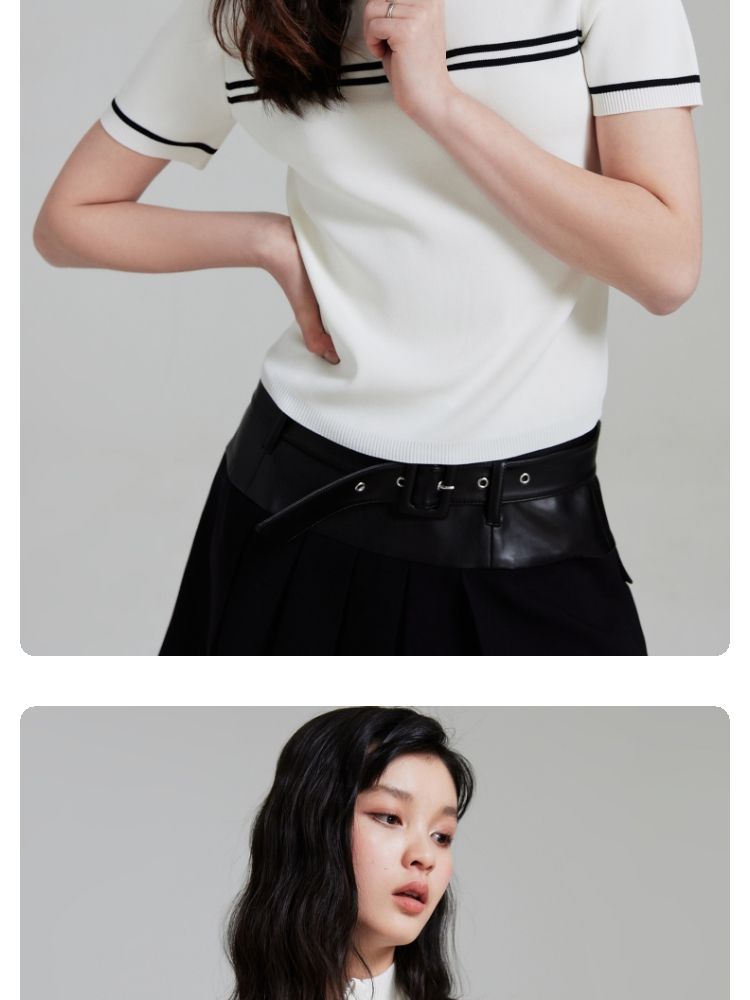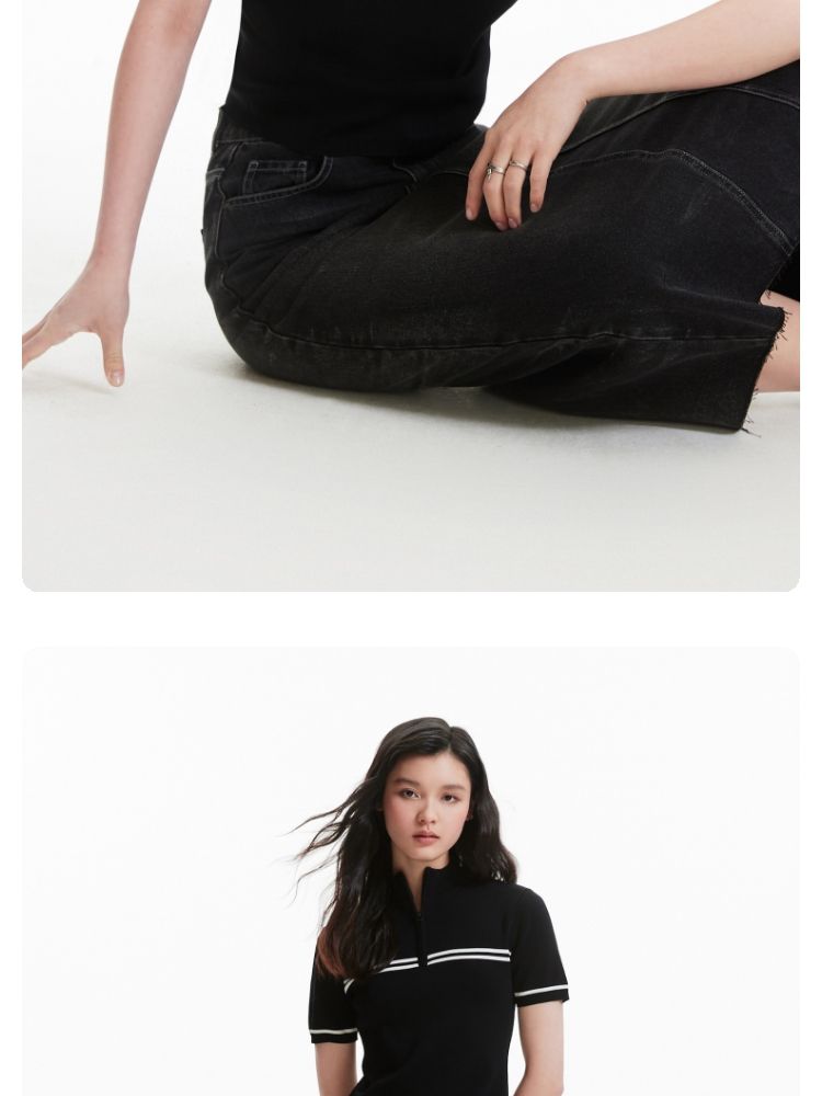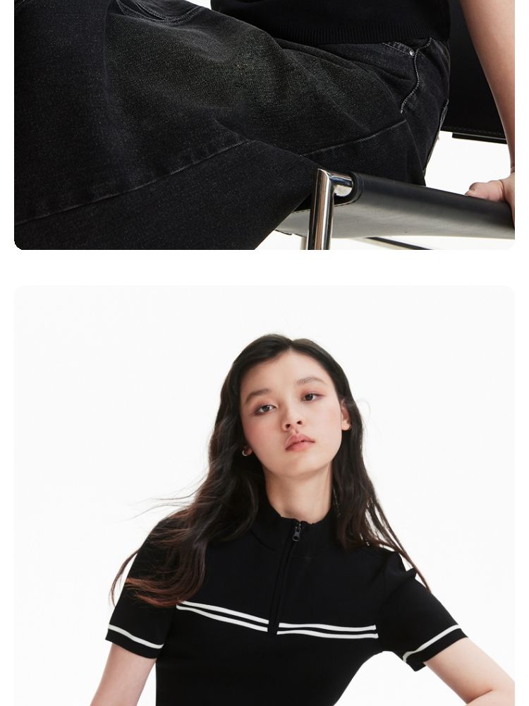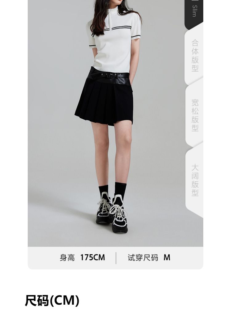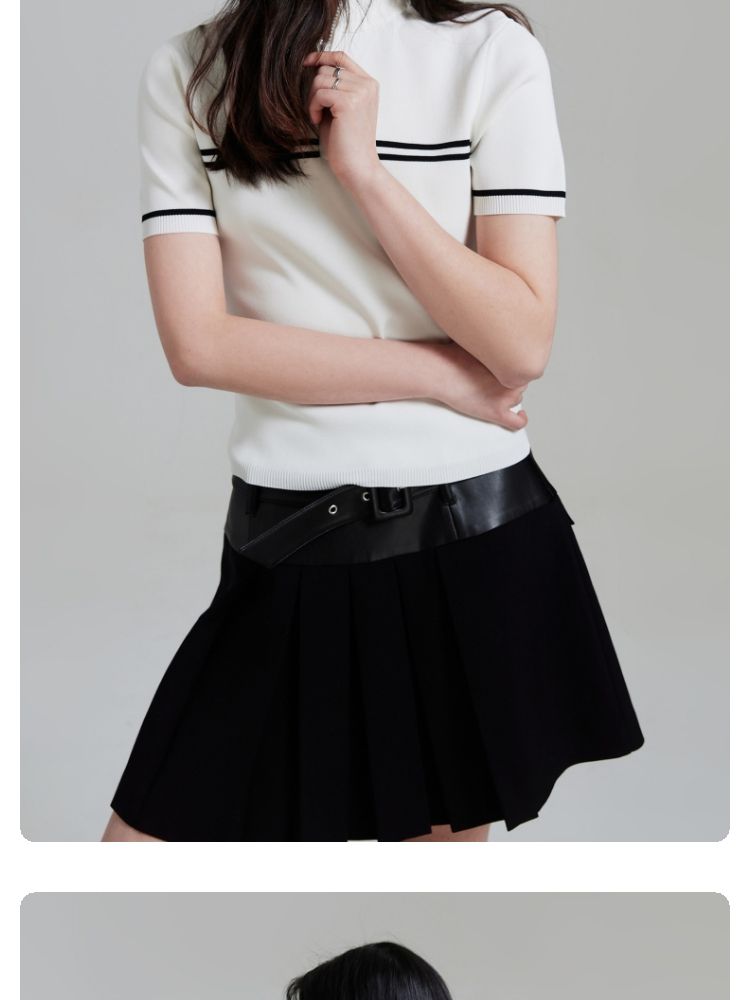 商品名称:【条纹撞色】针织衫女黑白撞色修身半高领拉链短袖上衣 418833