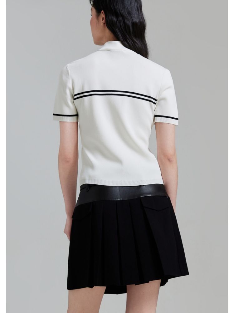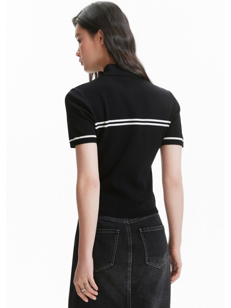 【条纹撞色】针织衫女黑白撞色修身半高领拉链短袖上衣 418833