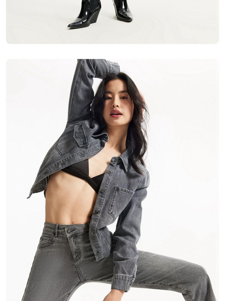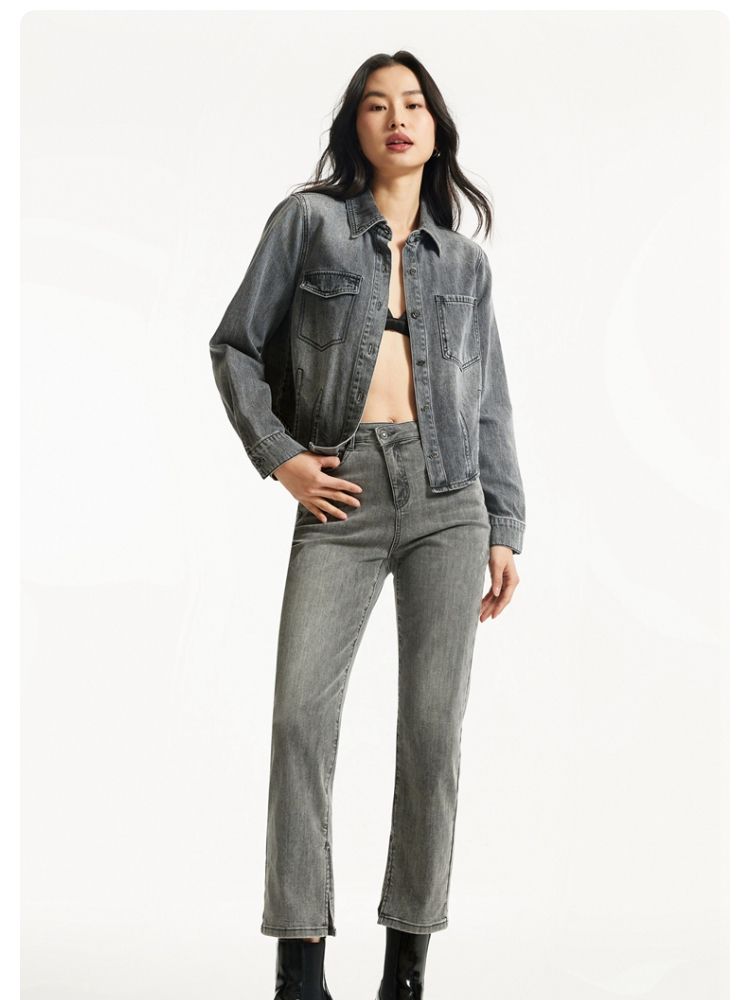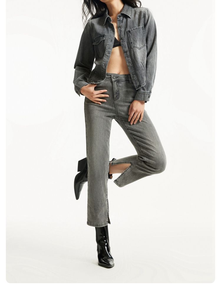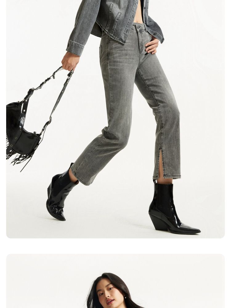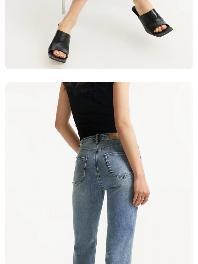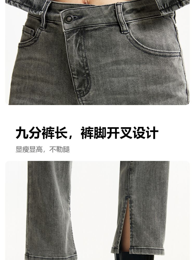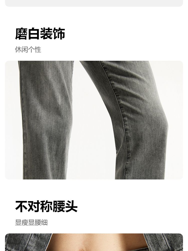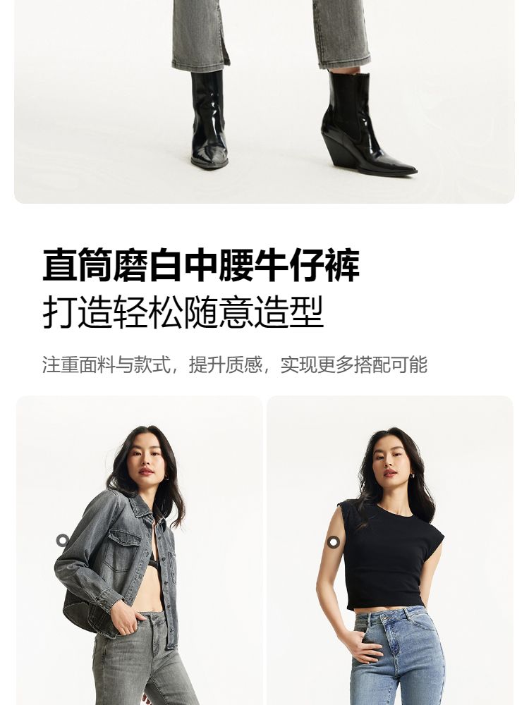 牛仔裤女九分直筒磨白中腰个性时尚简约 943825
