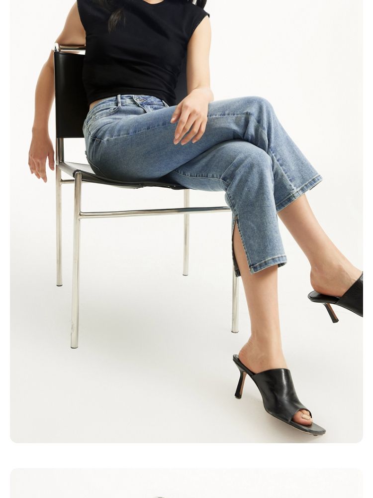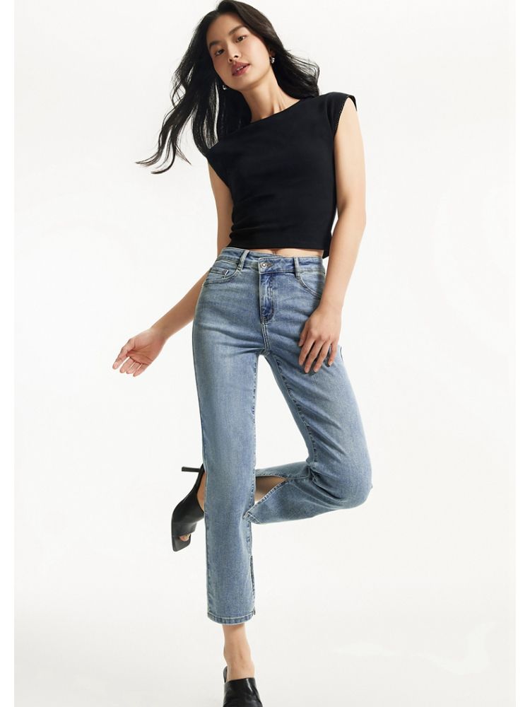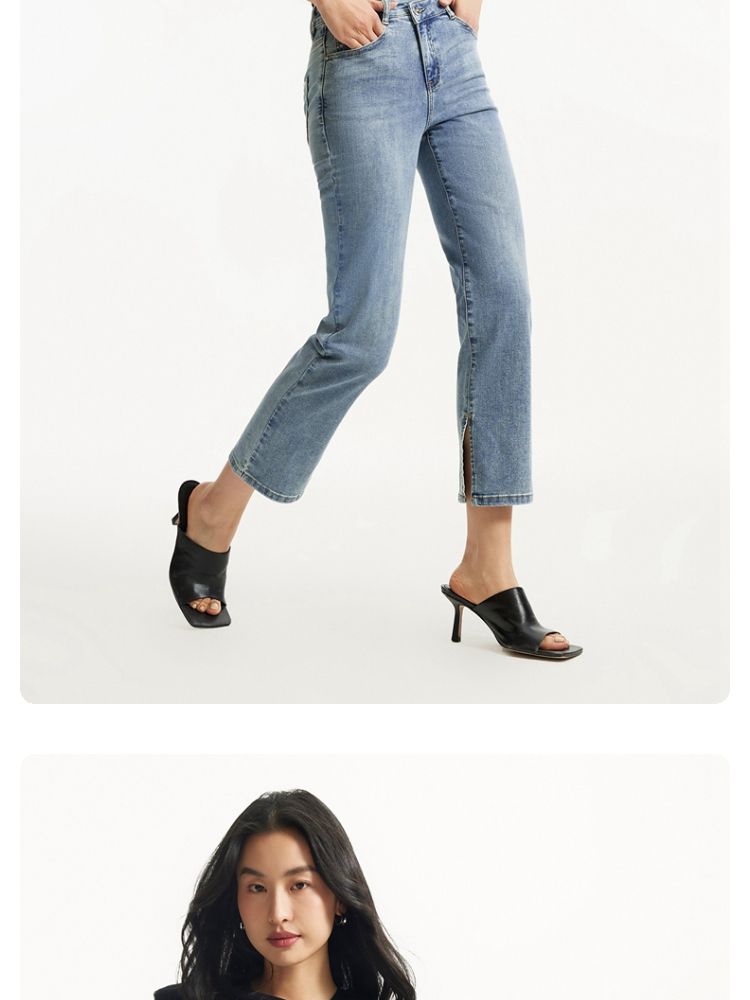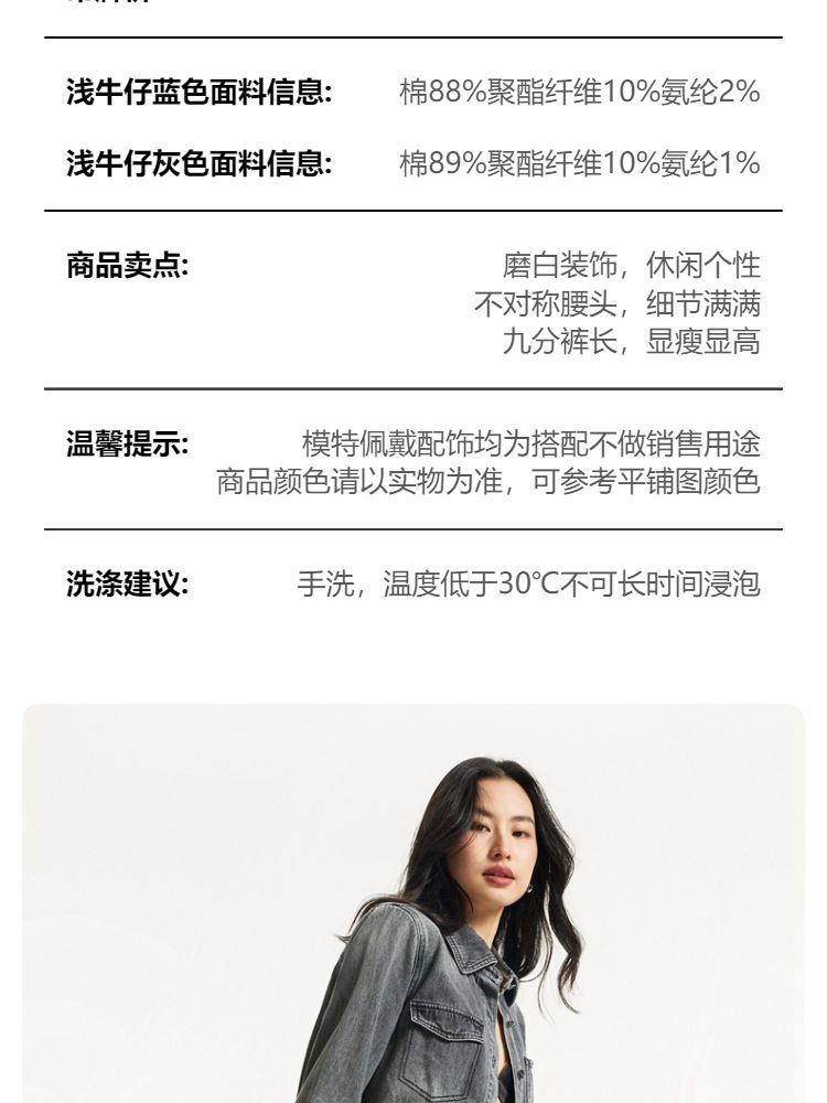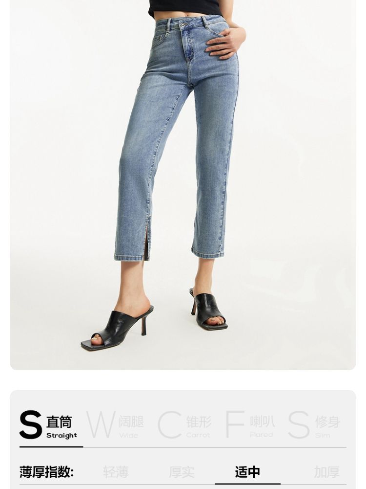 商品名称:牛仔裤女九分直筒磨白中腰个性时尚简约 943825