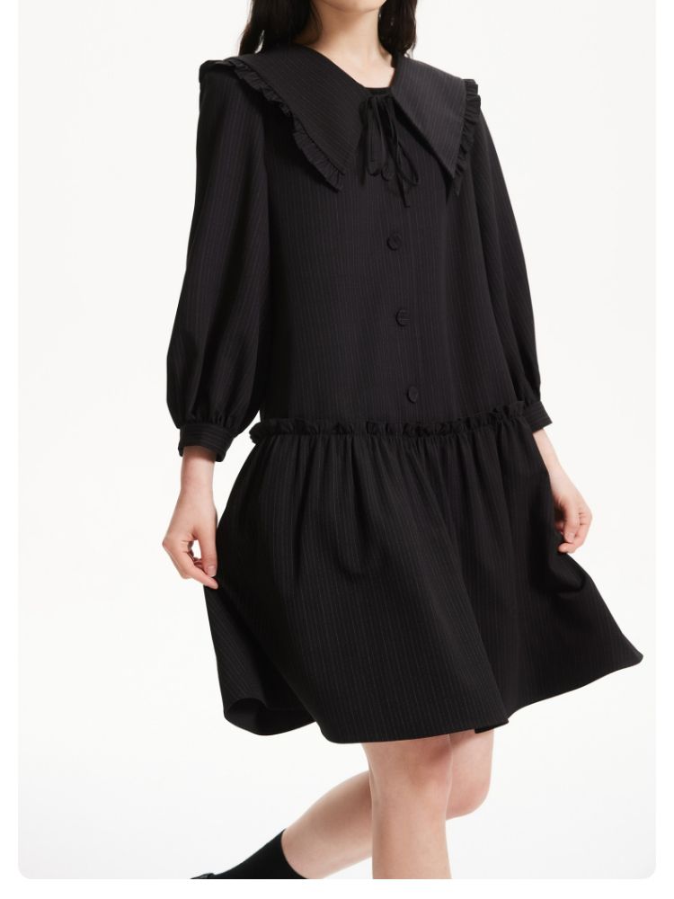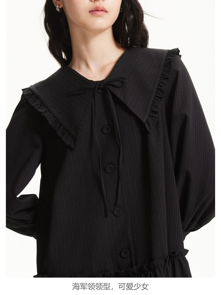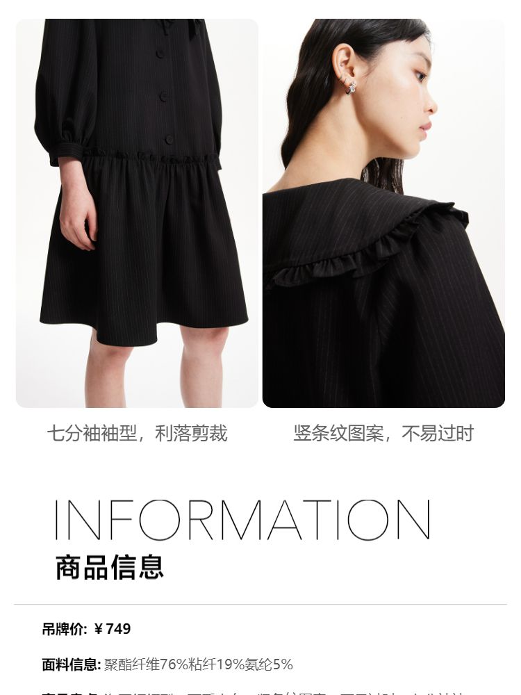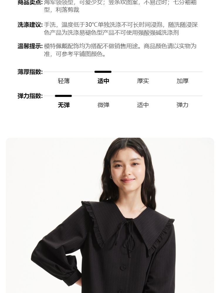 商品名称:连衣裙优雅气质七分袖海军领暗纹短裙女 975377