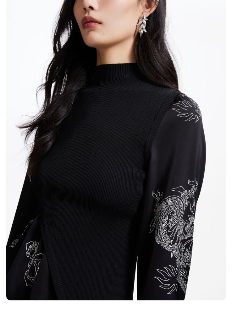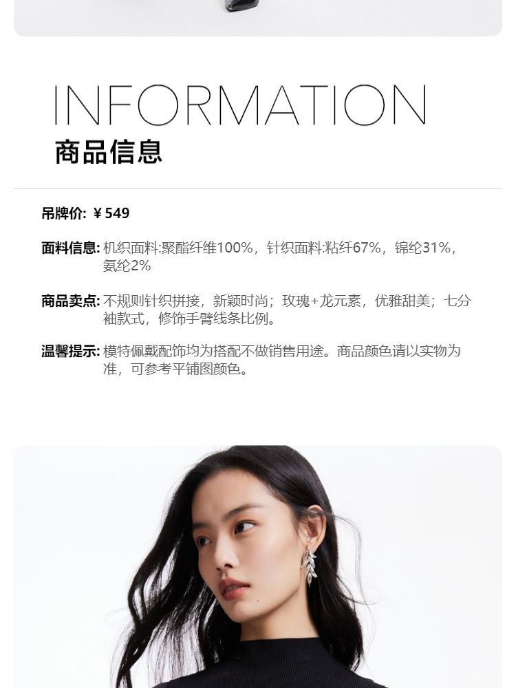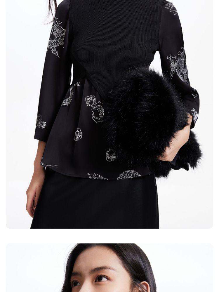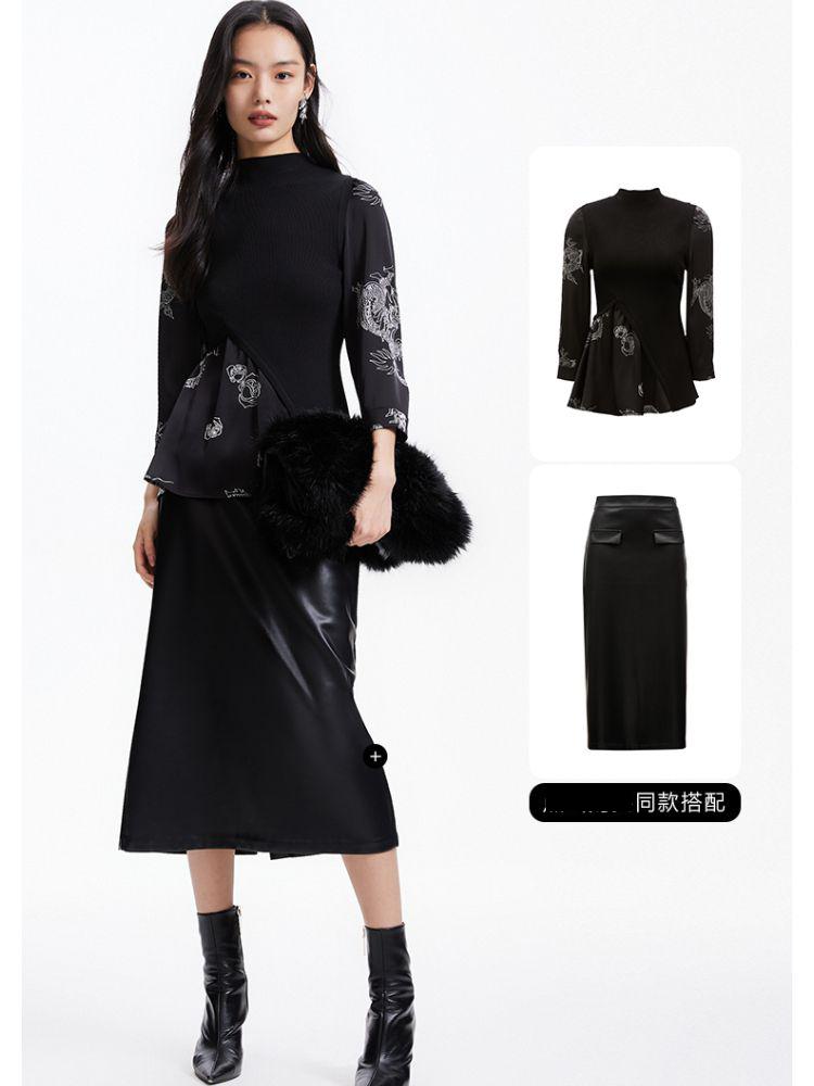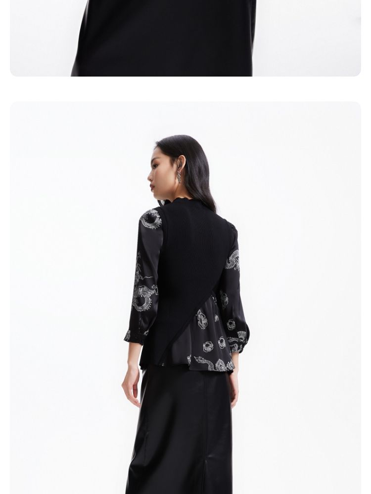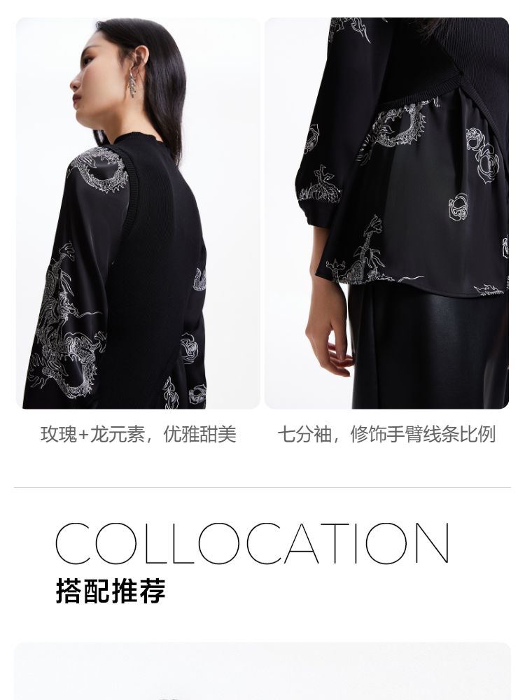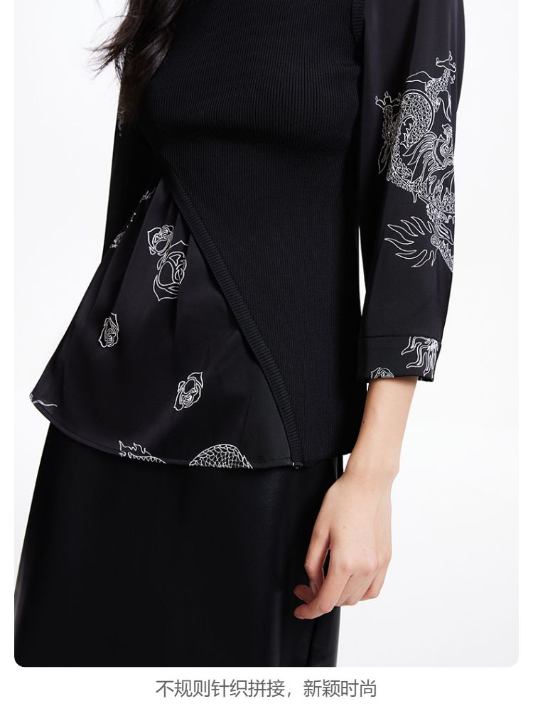 商品名称:【复古玫瑰】衬衫春秋优雅通勤复古玫瑰不规则针织拼接修身上衣 001681