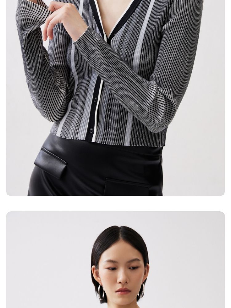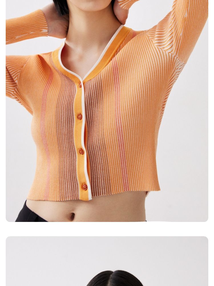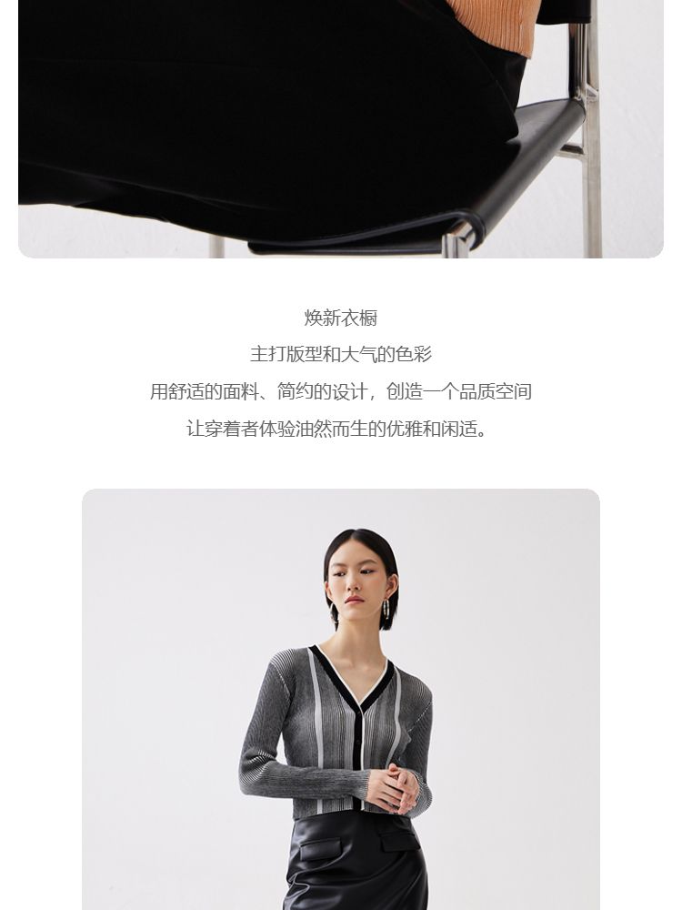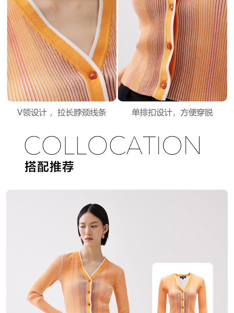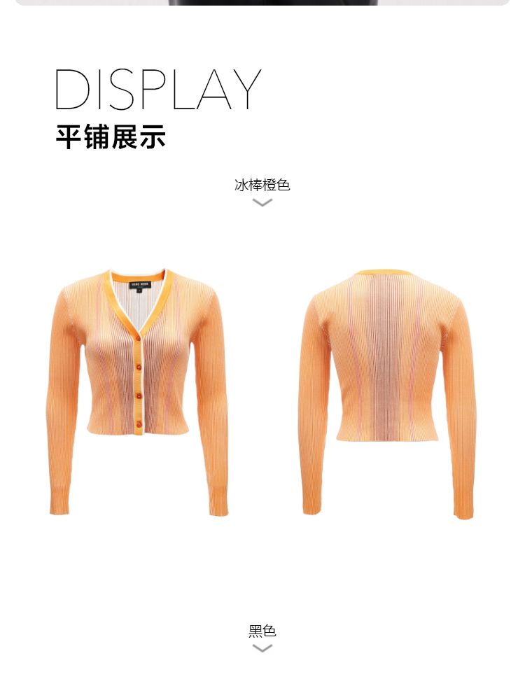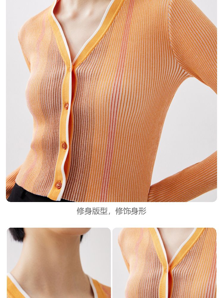 商品名称:【柔软开衫】针织衫女修身短款V领坑条弹力长袖通勤空调衫外搭 505617