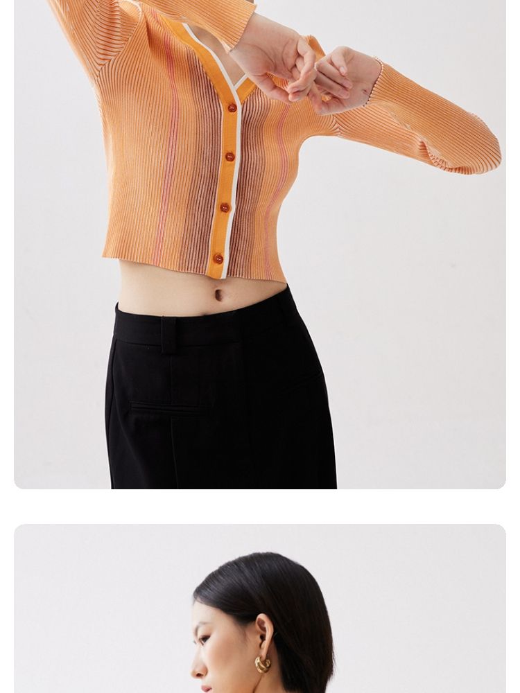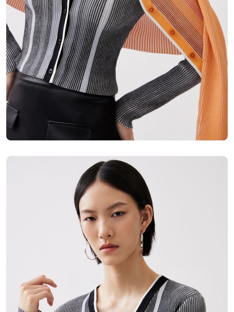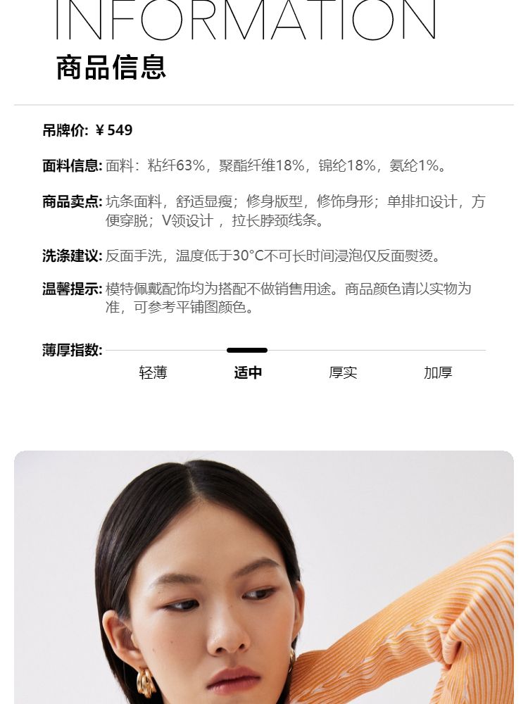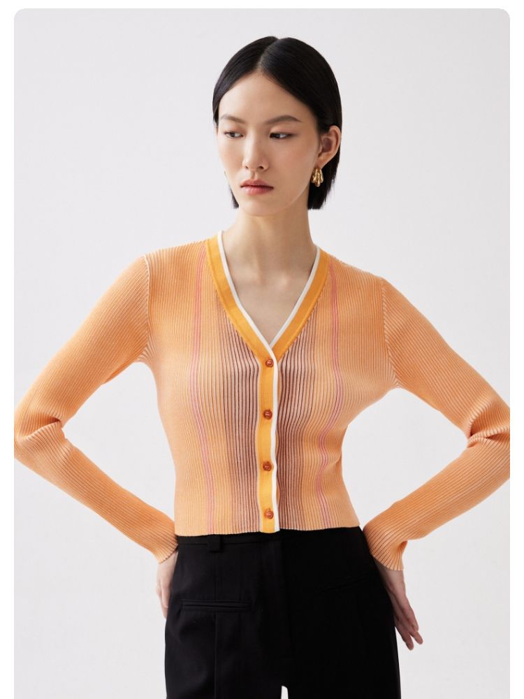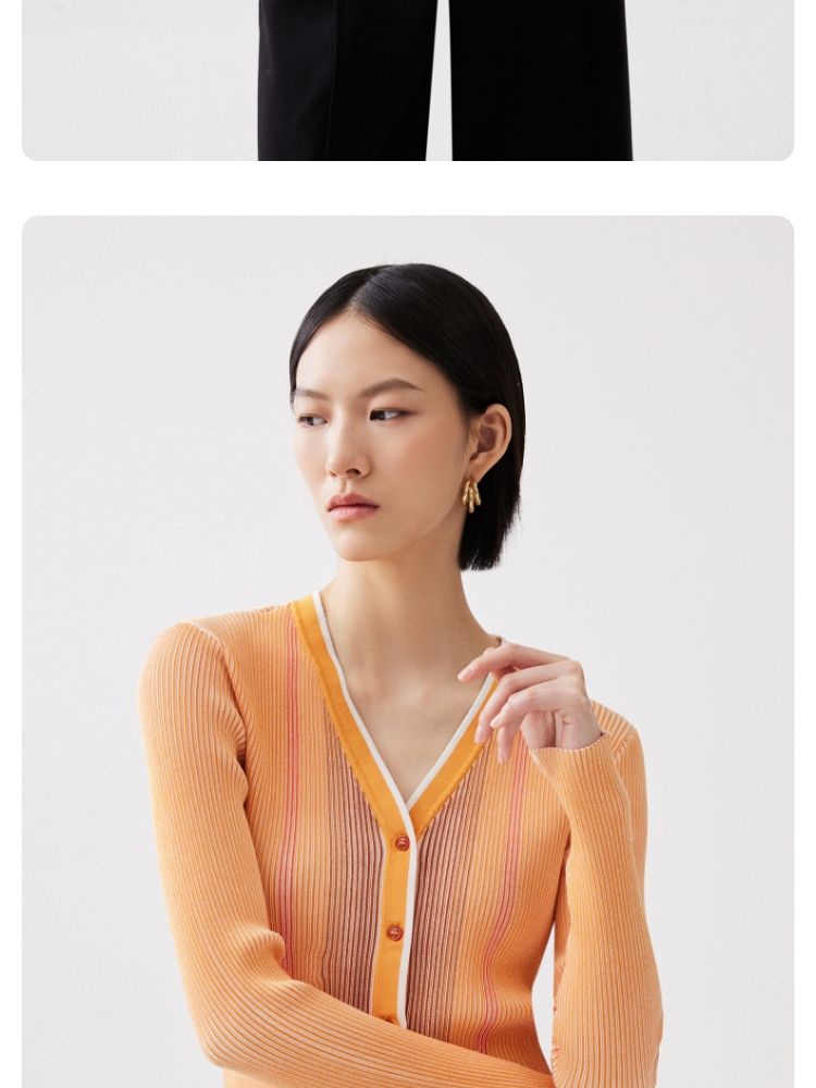 商品名称:【柔软开衫】针织衫女修身短款V领坑条弹力长袖通勤空调衫外搭 505617