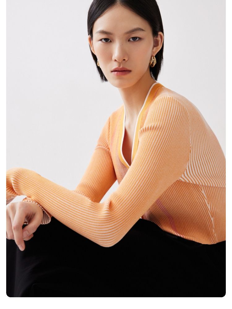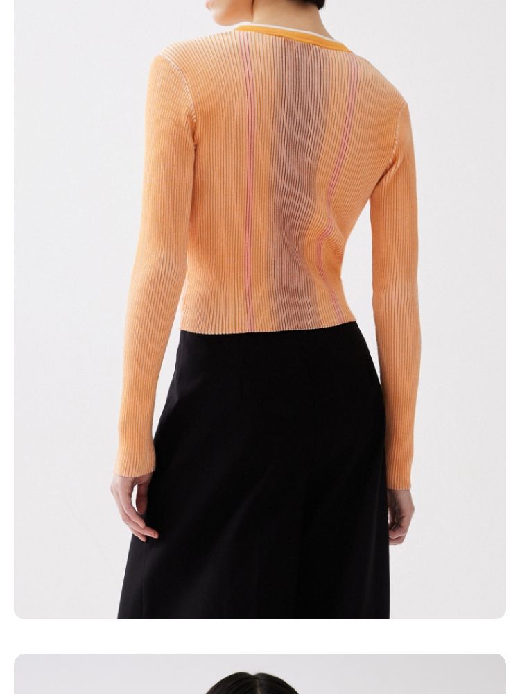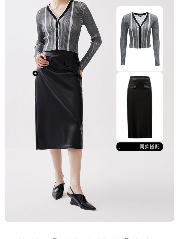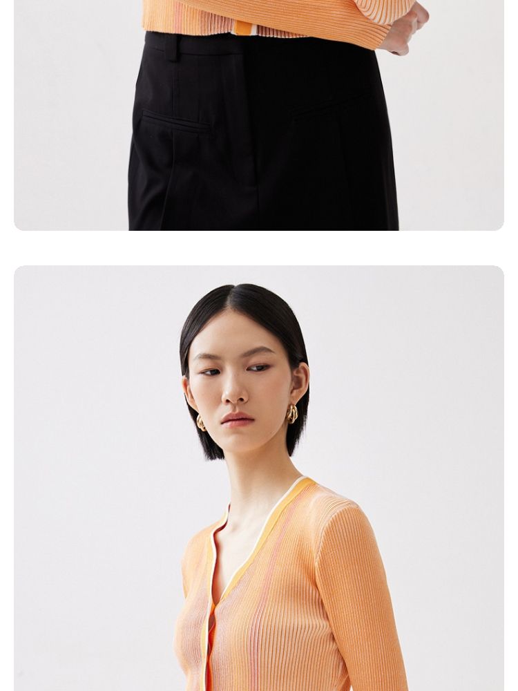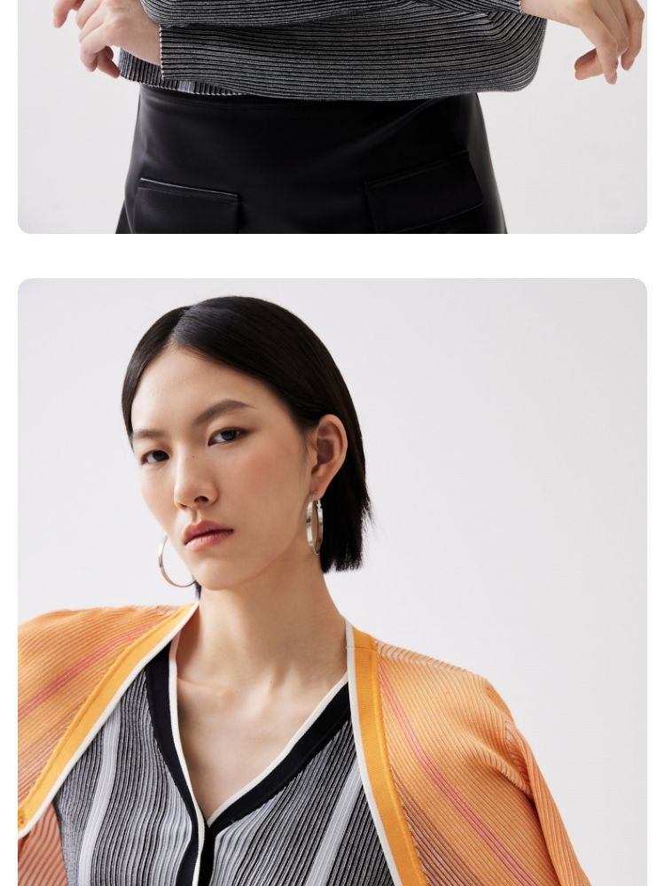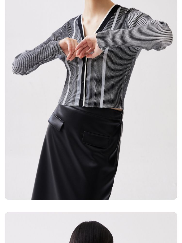 商品名称:【柔软开衫】针织衫女修身短款V领坑条弹力长袖通勤空调衫外搭 505617