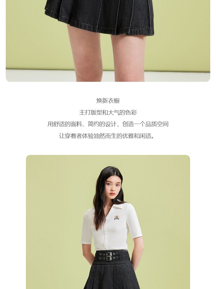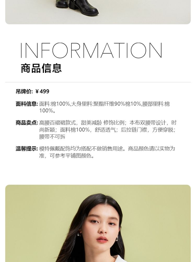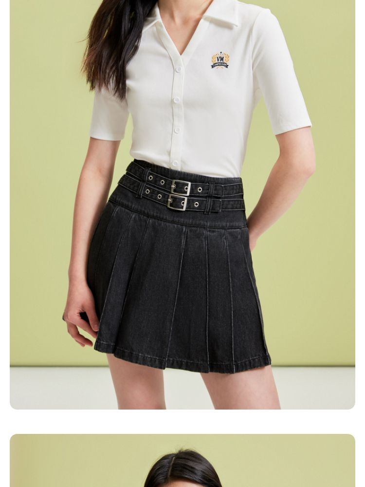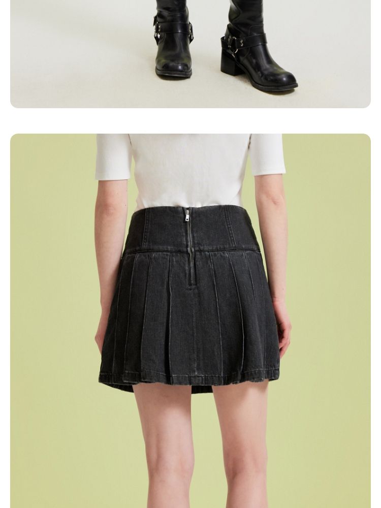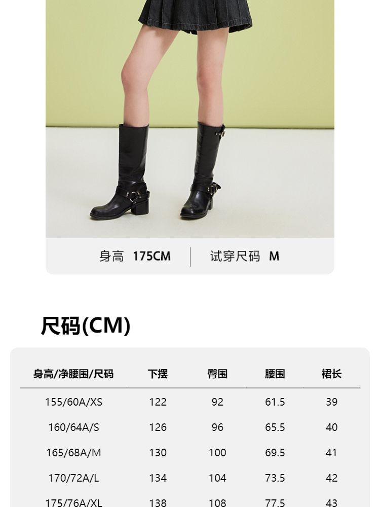 商品名称:半身裙学院风牛仔双腰带高腰百褶裙减龄 541521