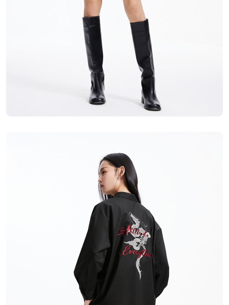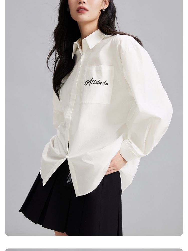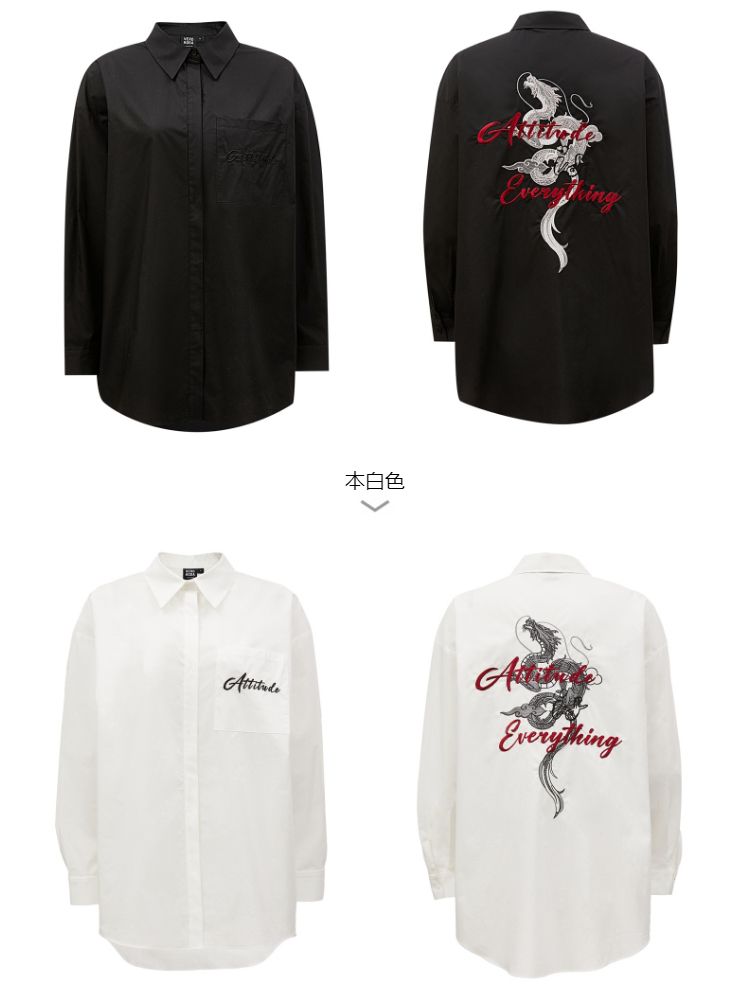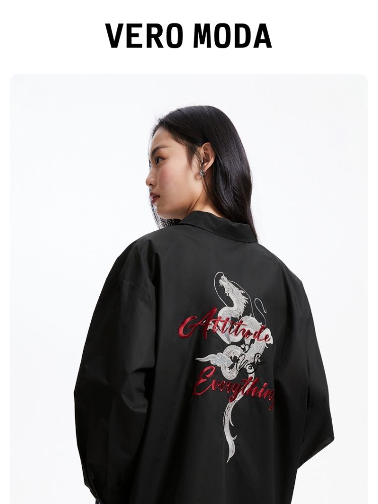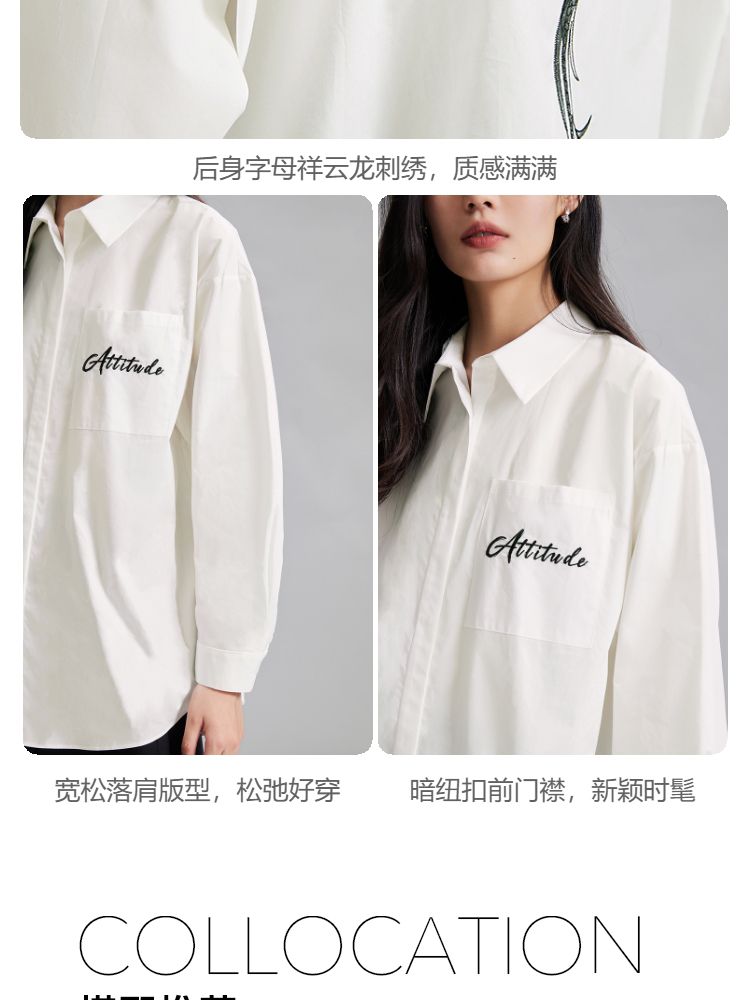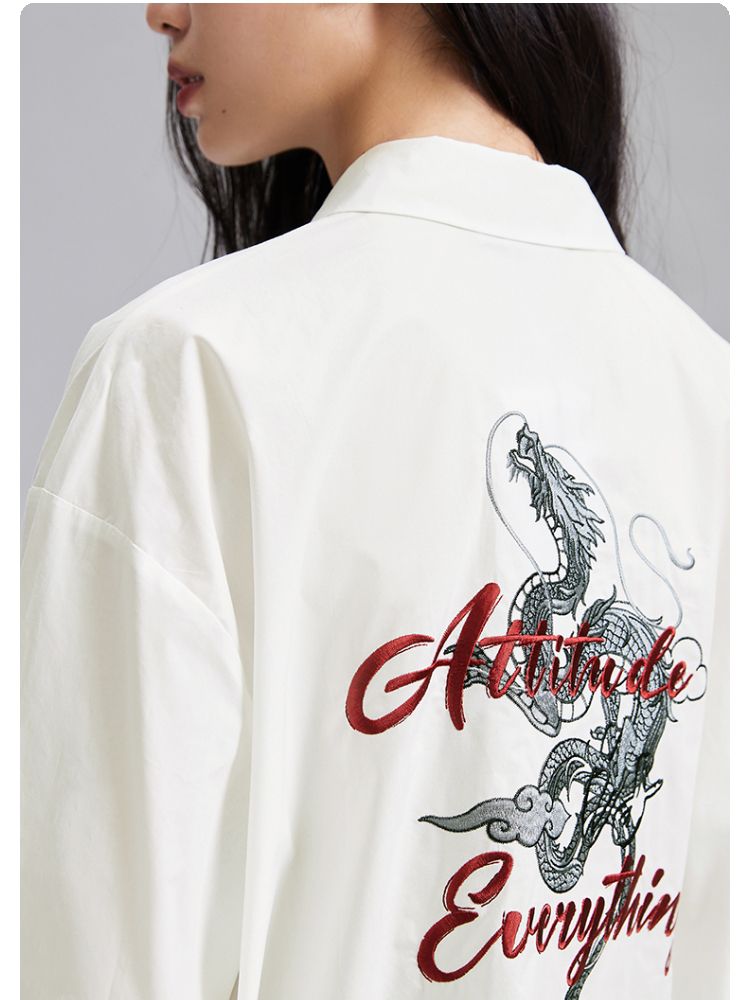 【新中式】衬衫女新中式纯棉宽松落肩祥云龙刺绣上衣高级 419473