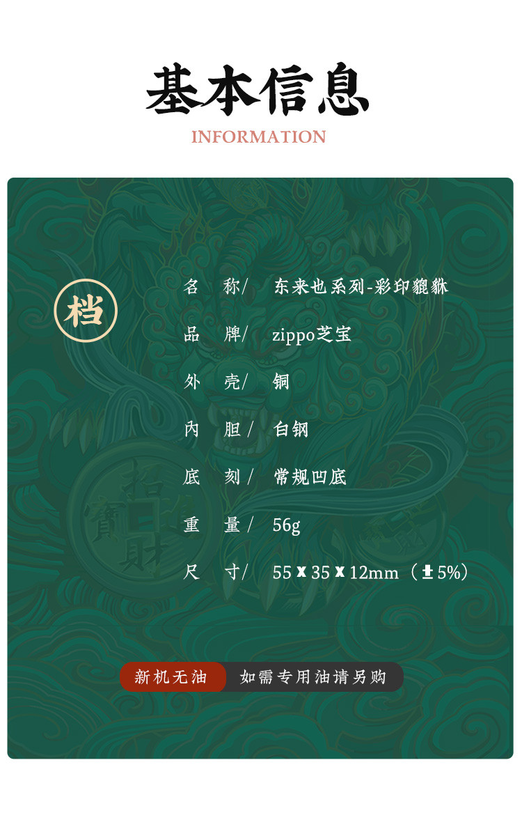 商品名称:【王牌爆款】打火机国潮系列彩印貔貅正版煤油生日礼物男士送礼 390558