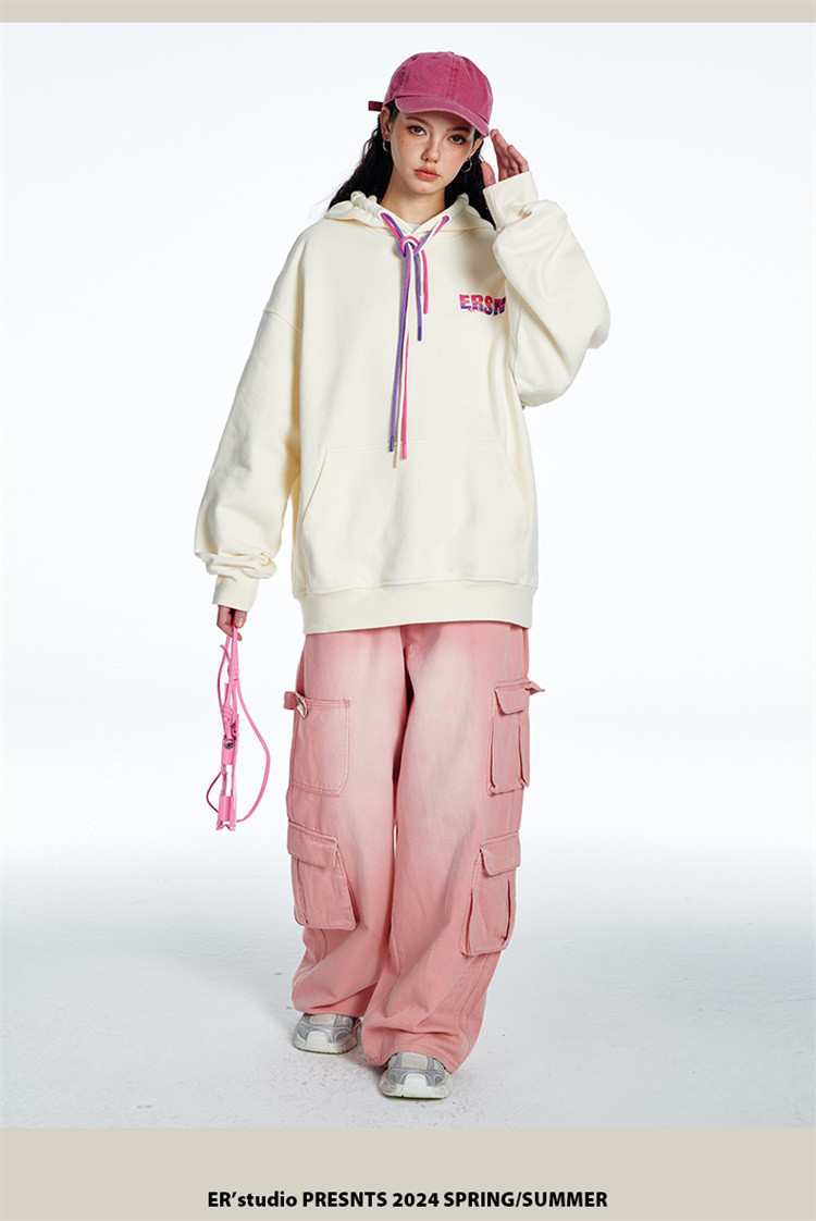彩色帽绳卫衣美式学院休闲潮牌情侣装 264279