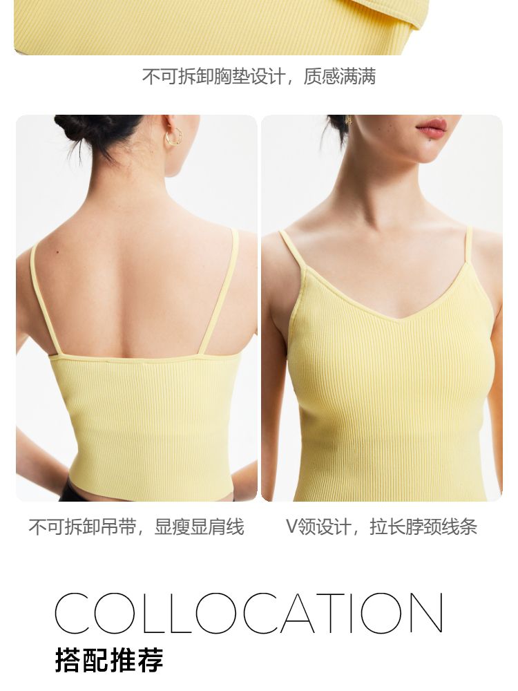 【带胸垫】背心女吊带坑条短款V领基础百搭弹力简约显瘦 912529