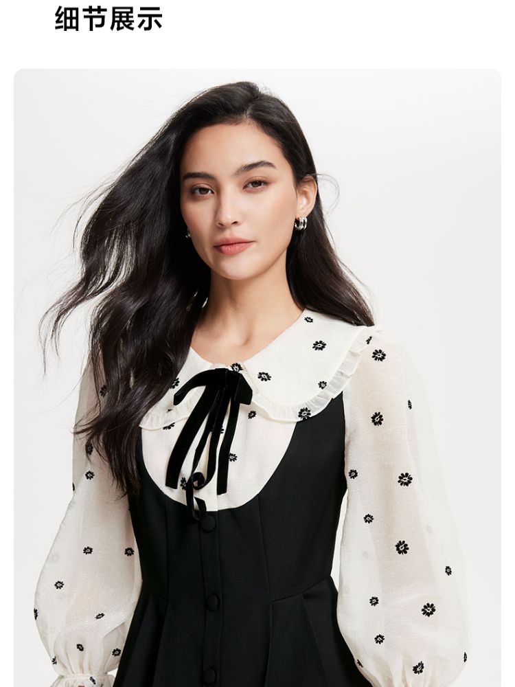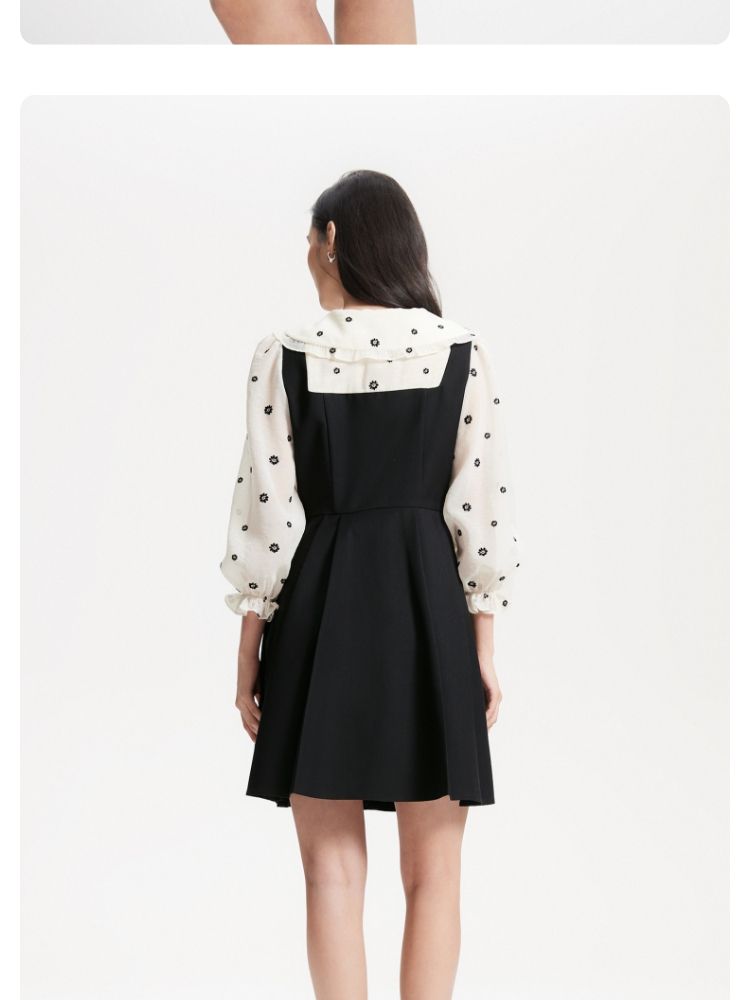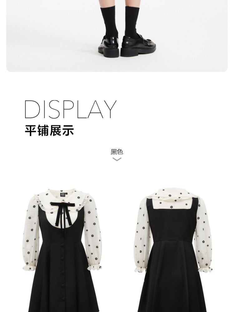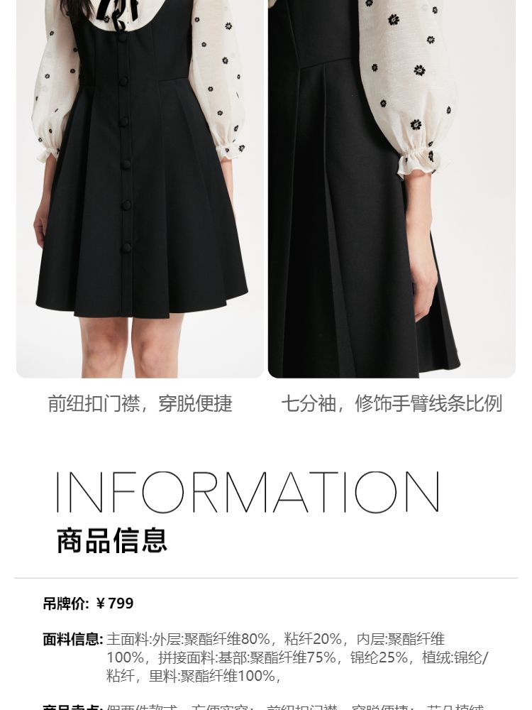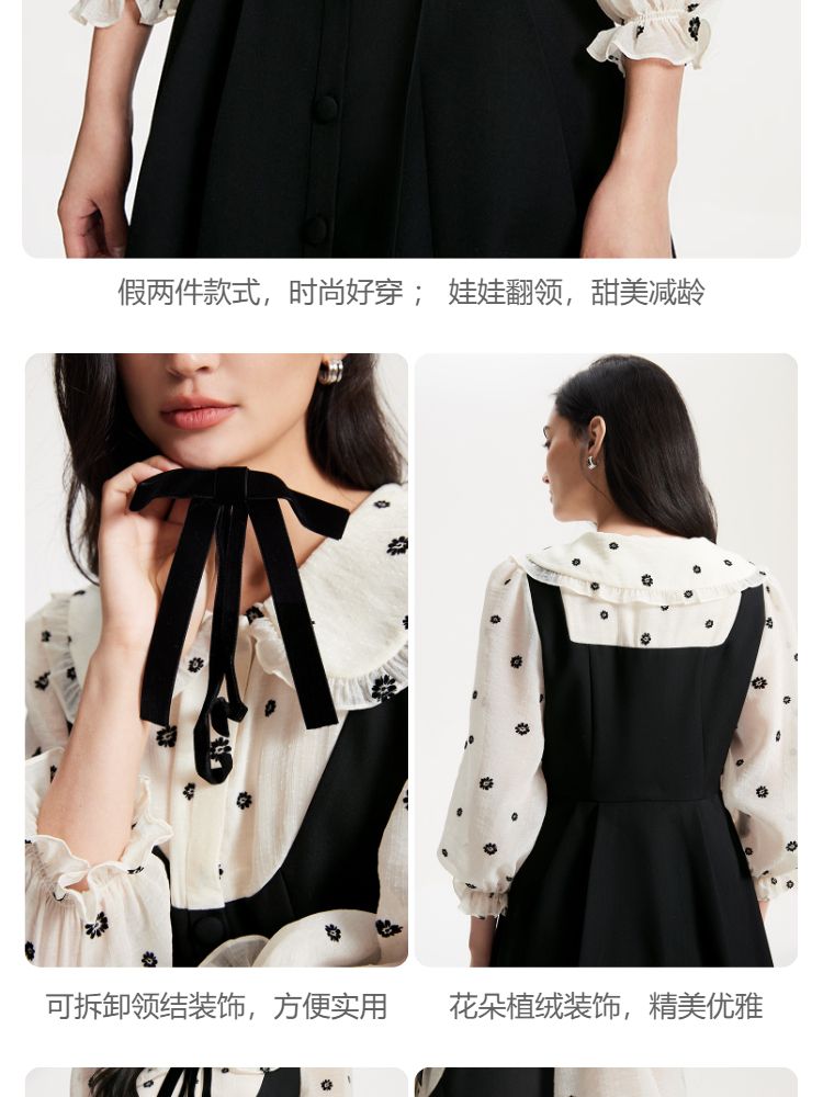 商品名称:【新派学院】连衣裙法式优雅娃娃翻领花朵可拆装饰小黑裙 335057