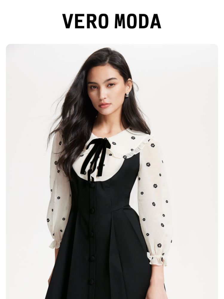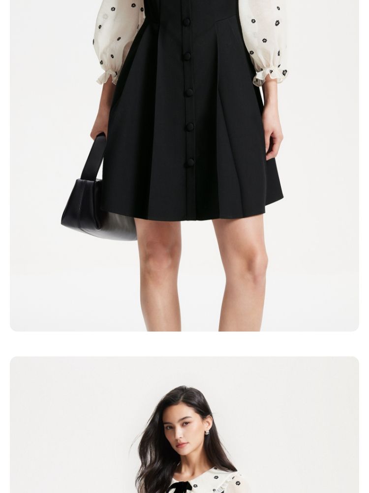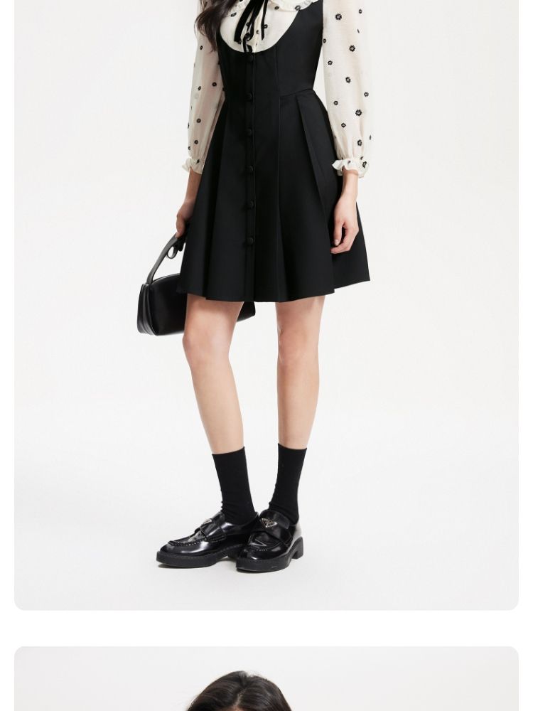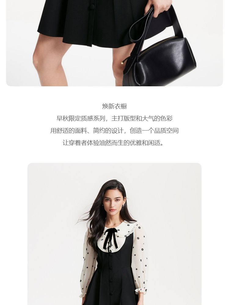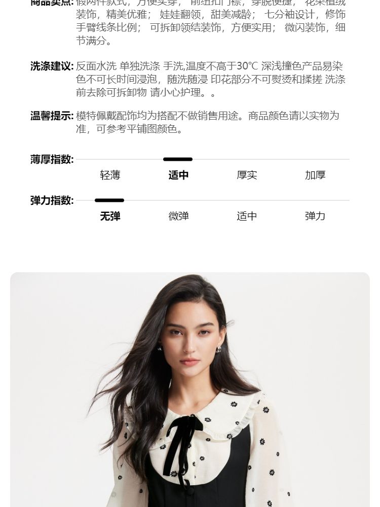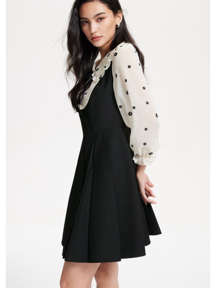 商品名称:【新派学院】连衣裙法式优雅娃娃翻领花朵可拆装饰小黑裙 335057