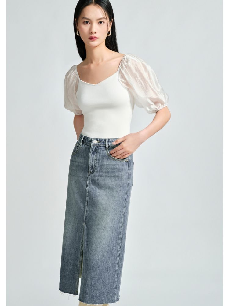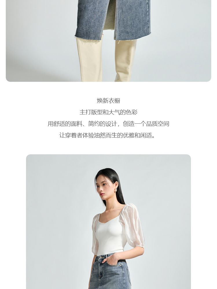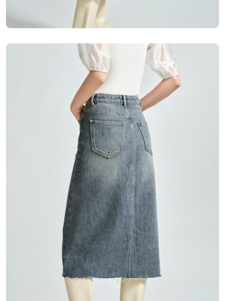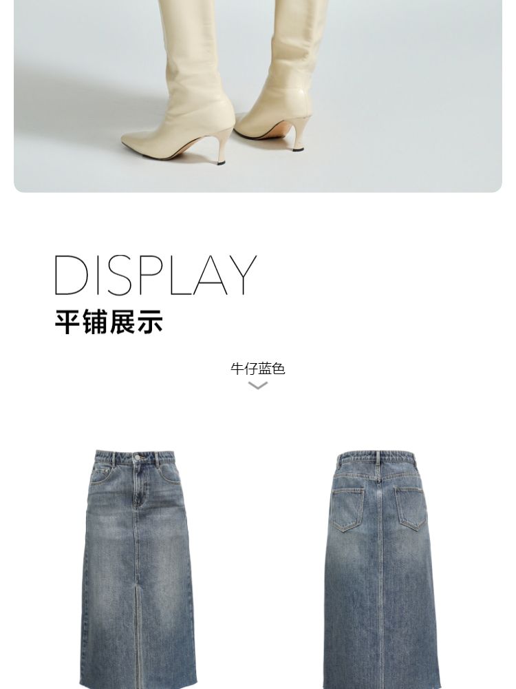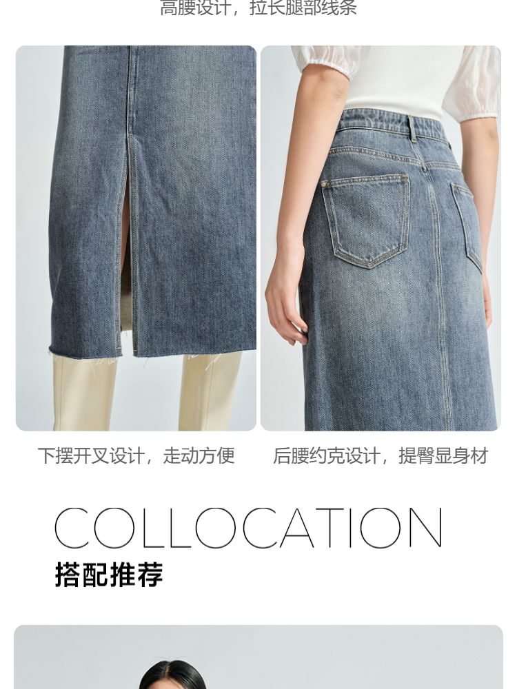 商品名称:【直筒开叉】半身裙女直筒牛仔中长裙纯色高腰休闲街头简约 842449