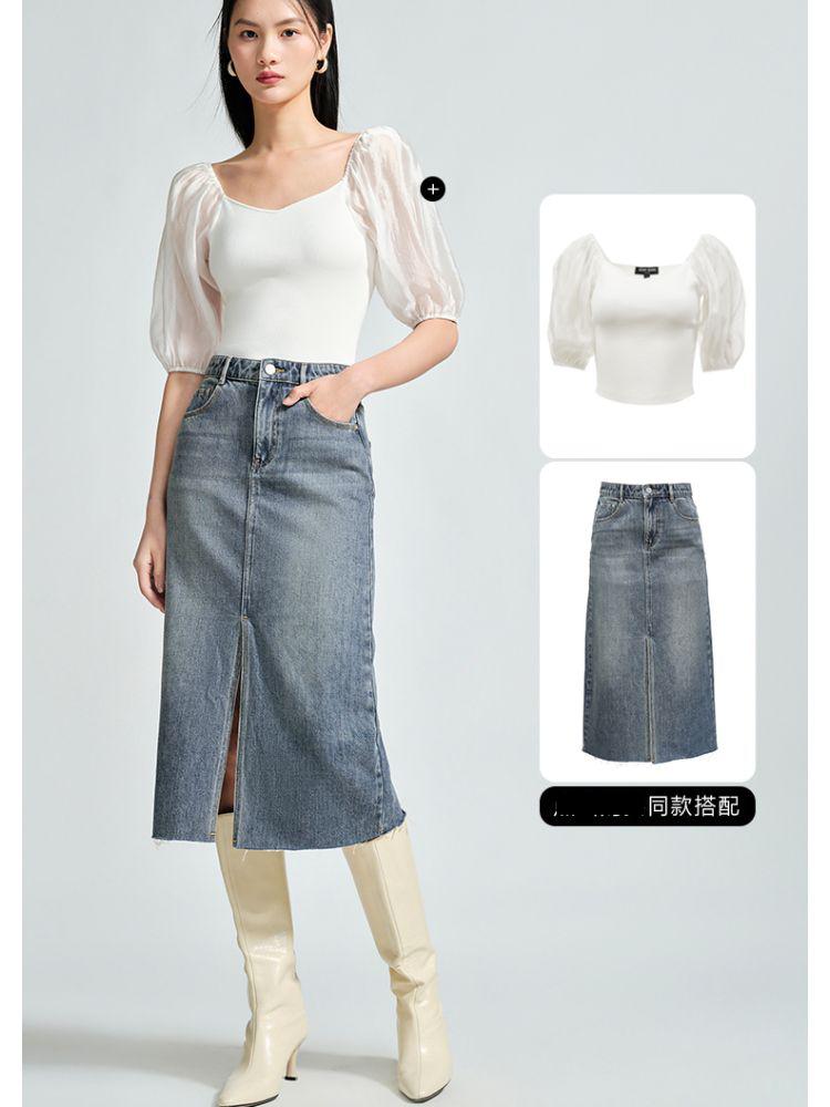 【直筒开叉】半身裙女直筒牛仔中长裙纯色高腰休闲街头简约 842449