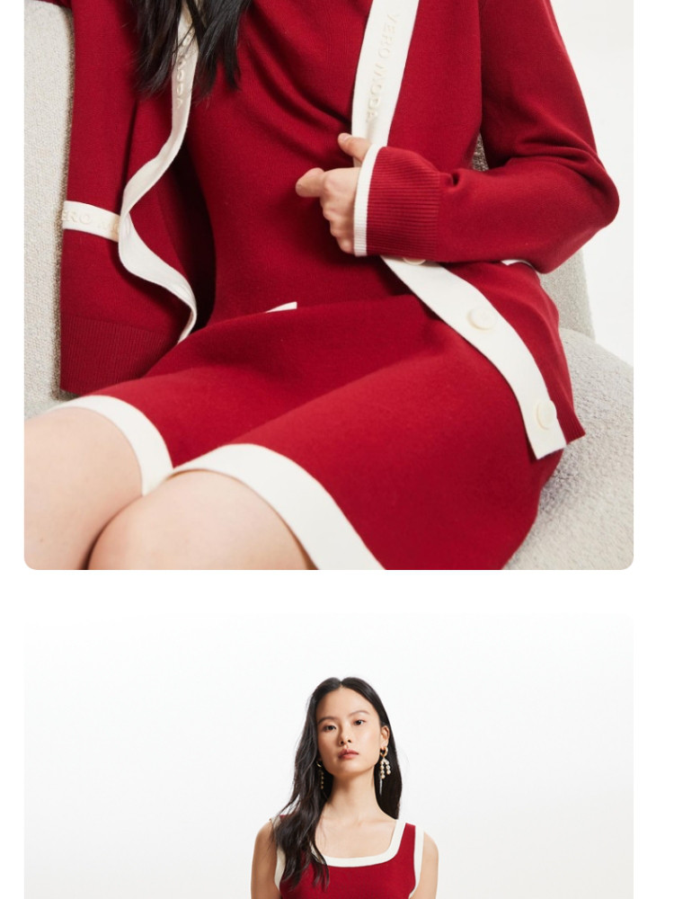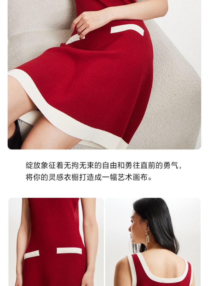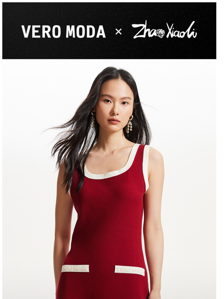 商品名称:【联名款】针织连衣裙赵小黎艺术家联名系列方领收腰吊带优雅气质 015889