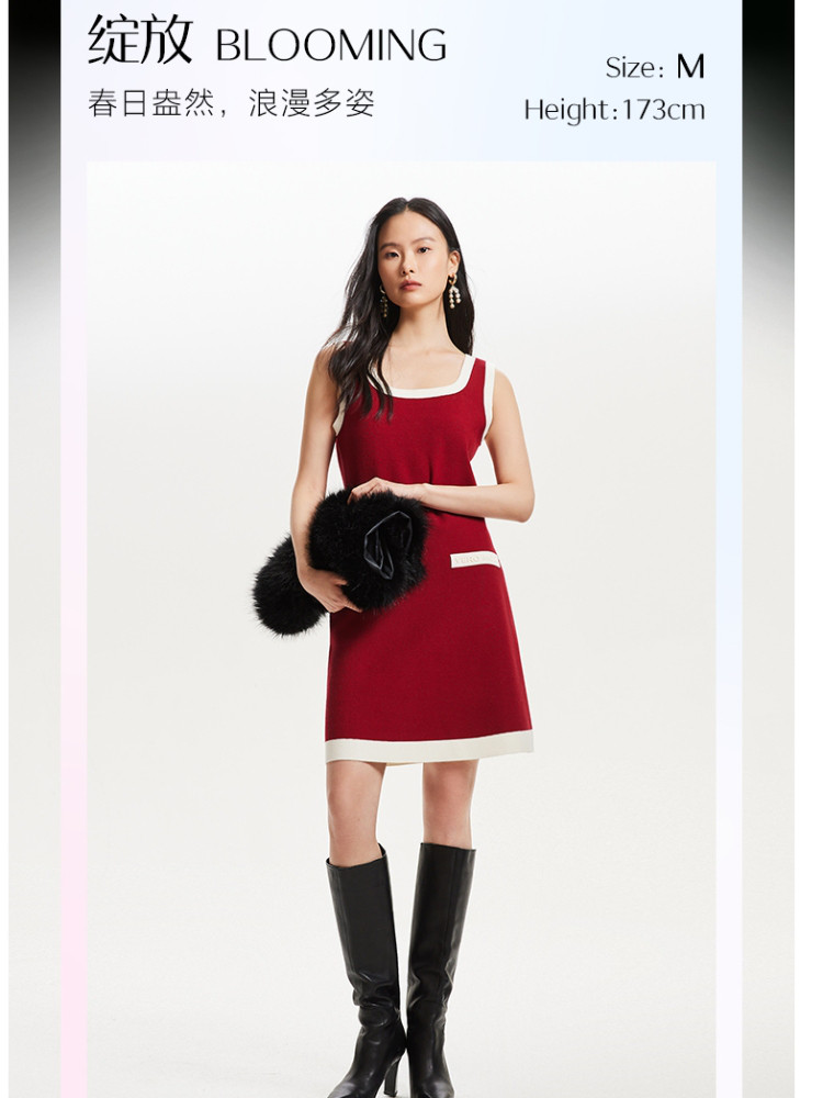 【联名款】针织连衣裙赵小黎艺术家联名系列方领收腰吊带优雅气质 015889