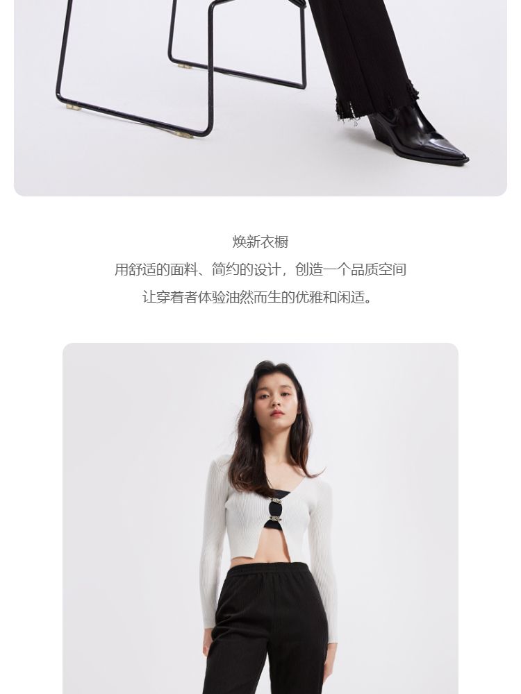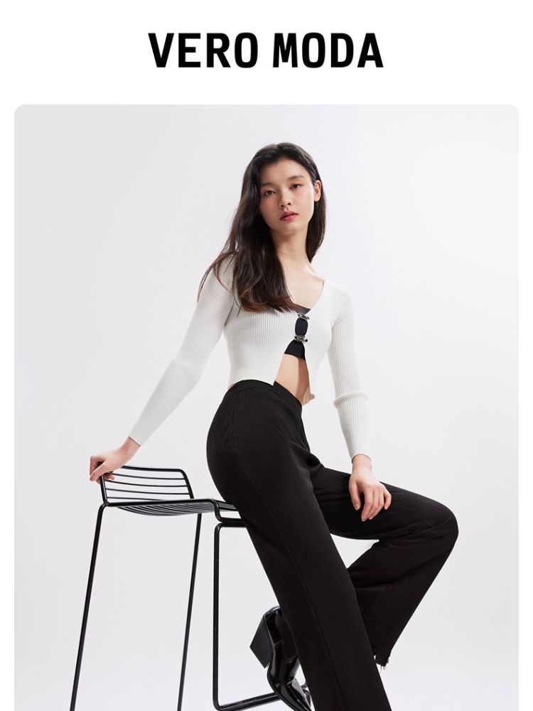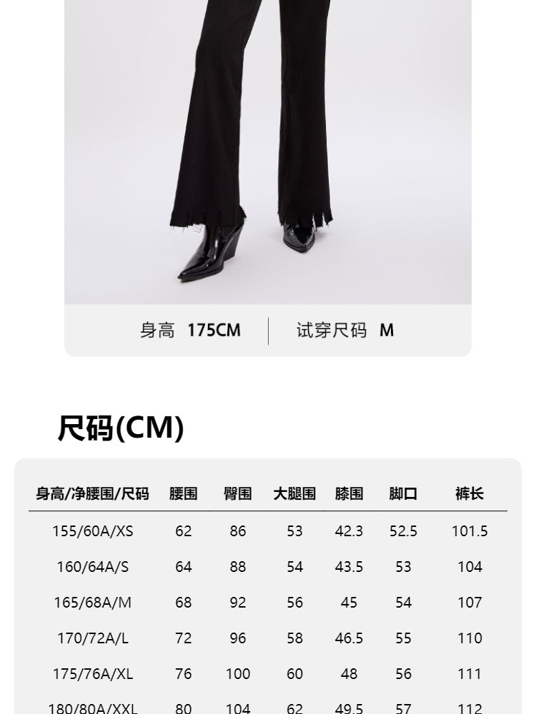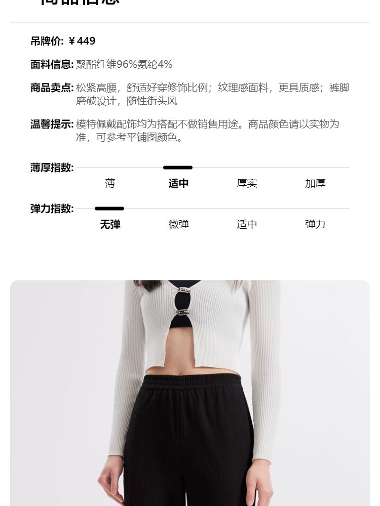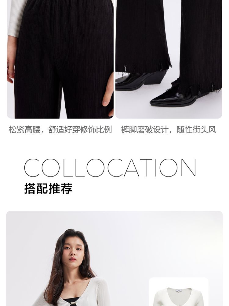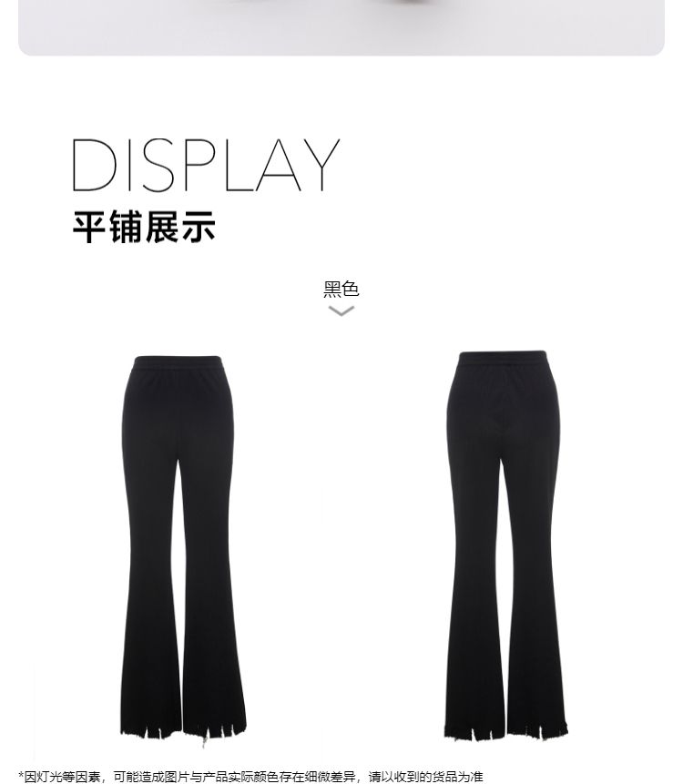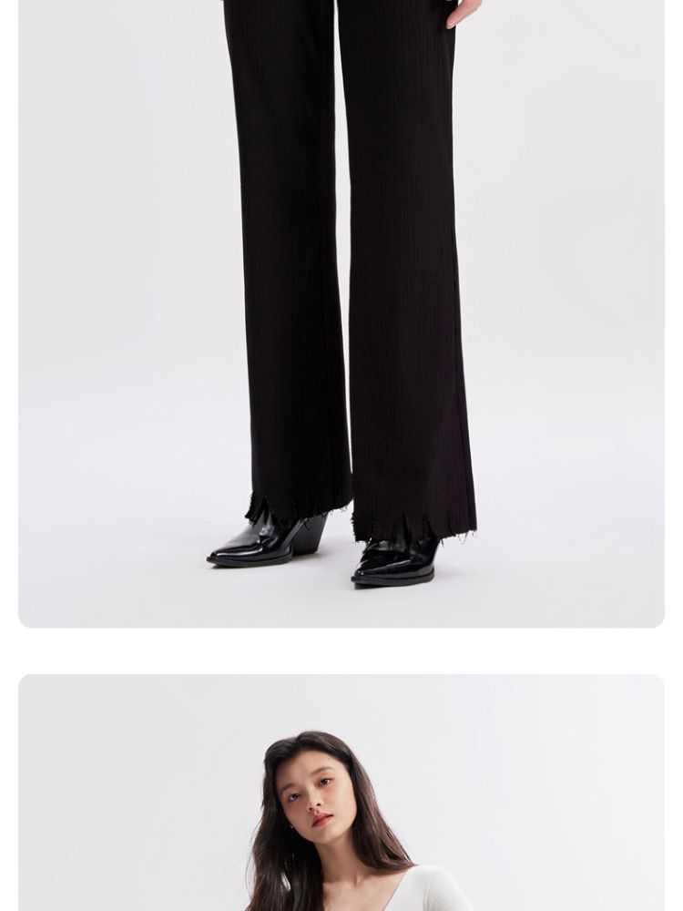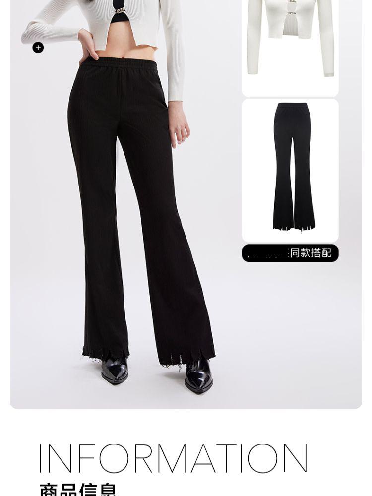 商品名称:【磨破纹理感】休闲裤女松紧高腰微喇纹理感裤脚磨破长裤 691153
