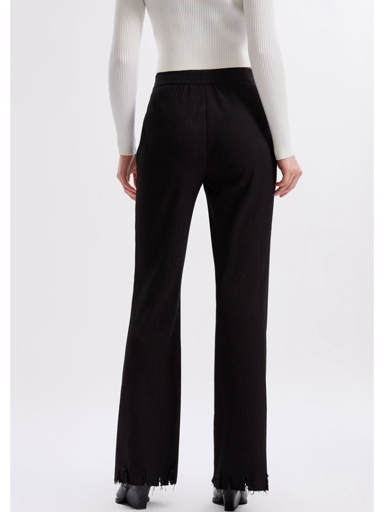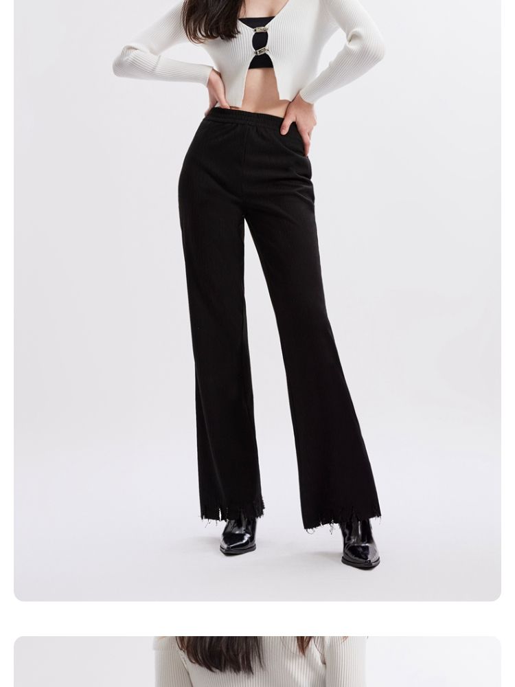 【磨破纹理感】休闲裤女松紧高腰微喇纹理感裤脚磨破长裤 691153