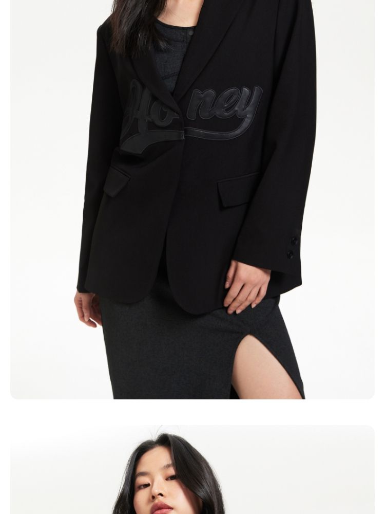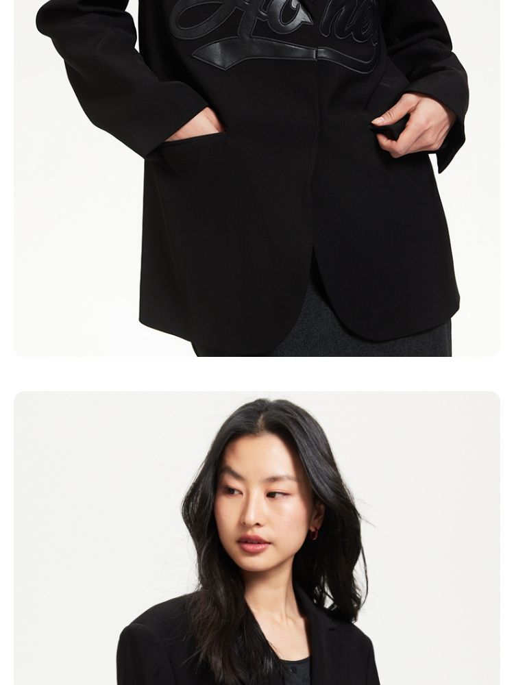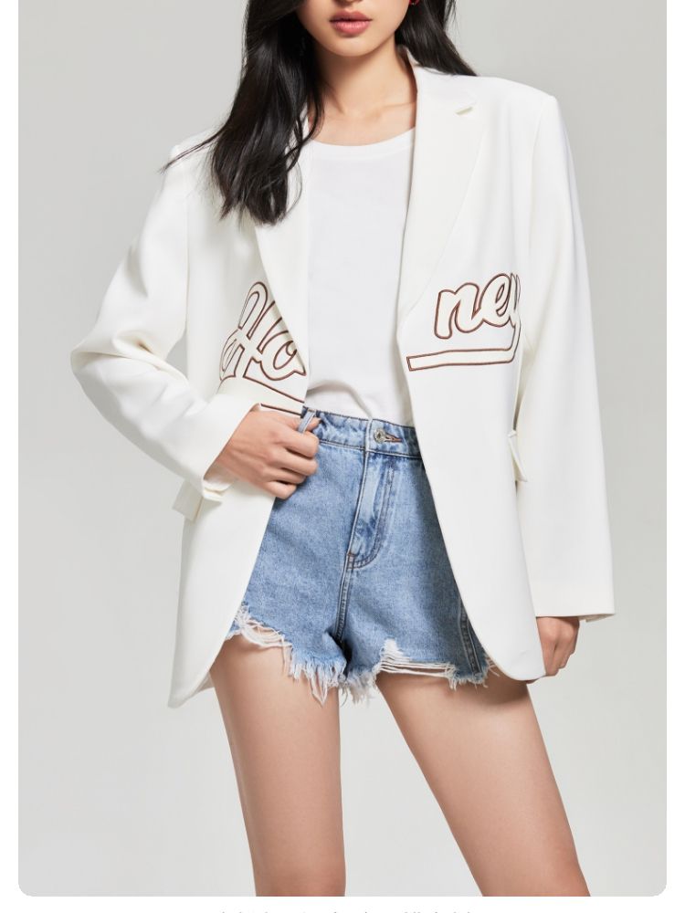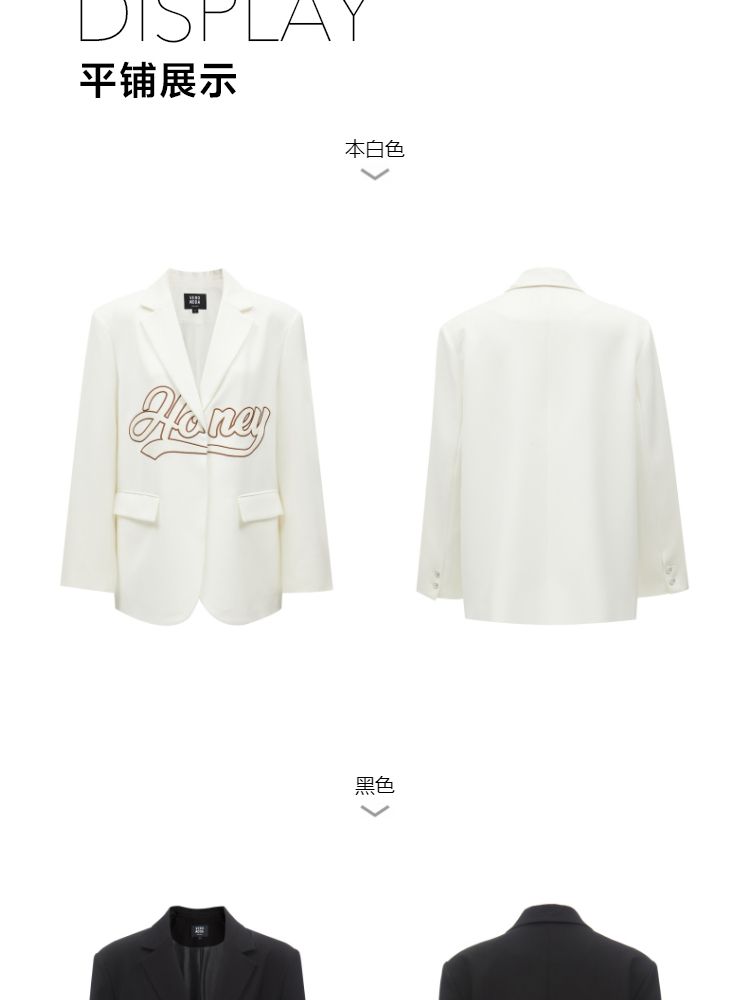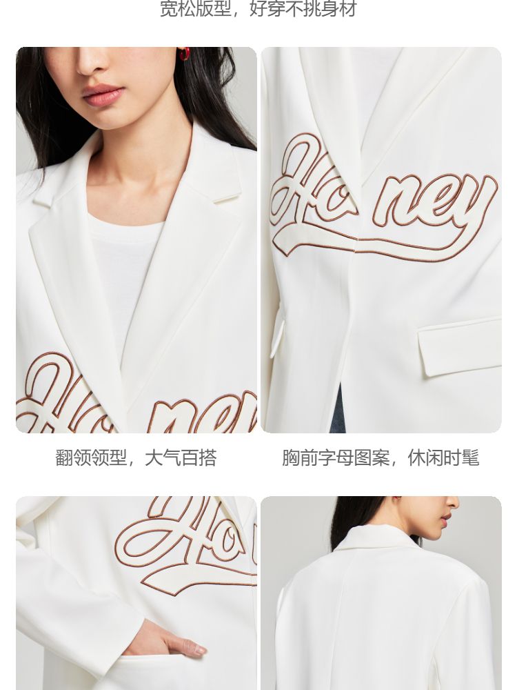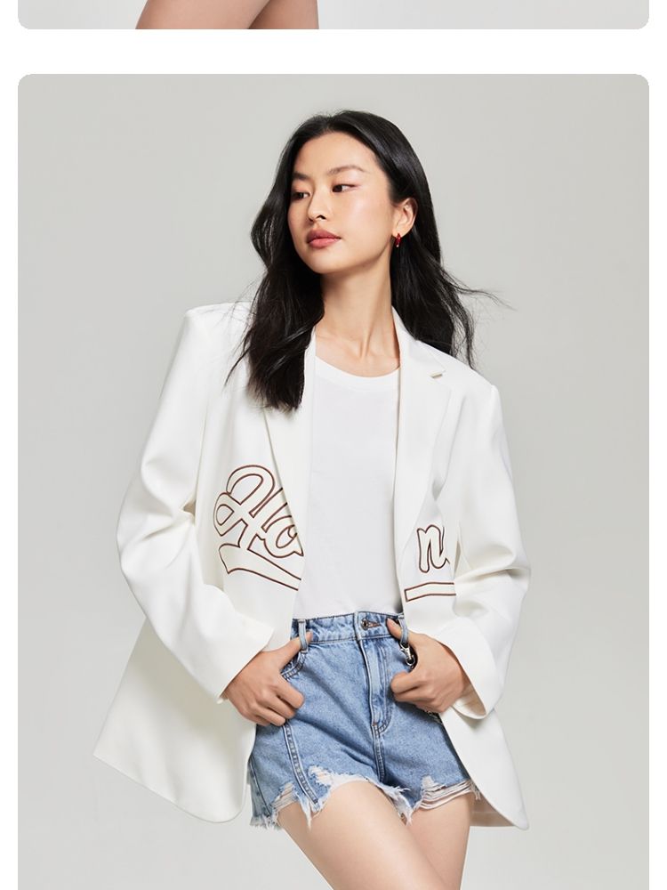 商品名称:【磁吸两粒扣】宽松翻领字母图案简约百搭西装外套女 325137