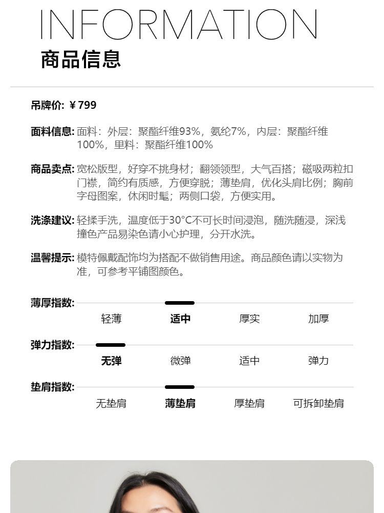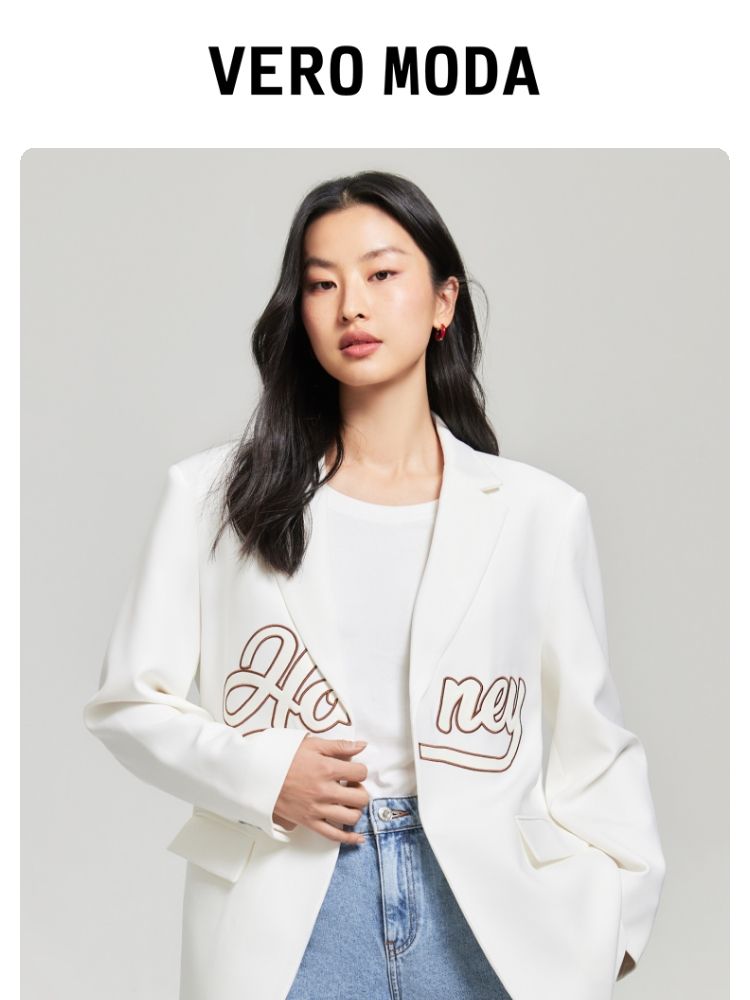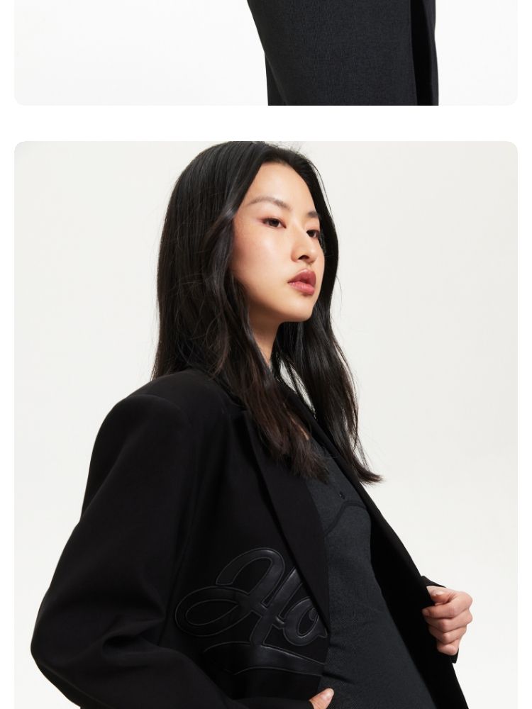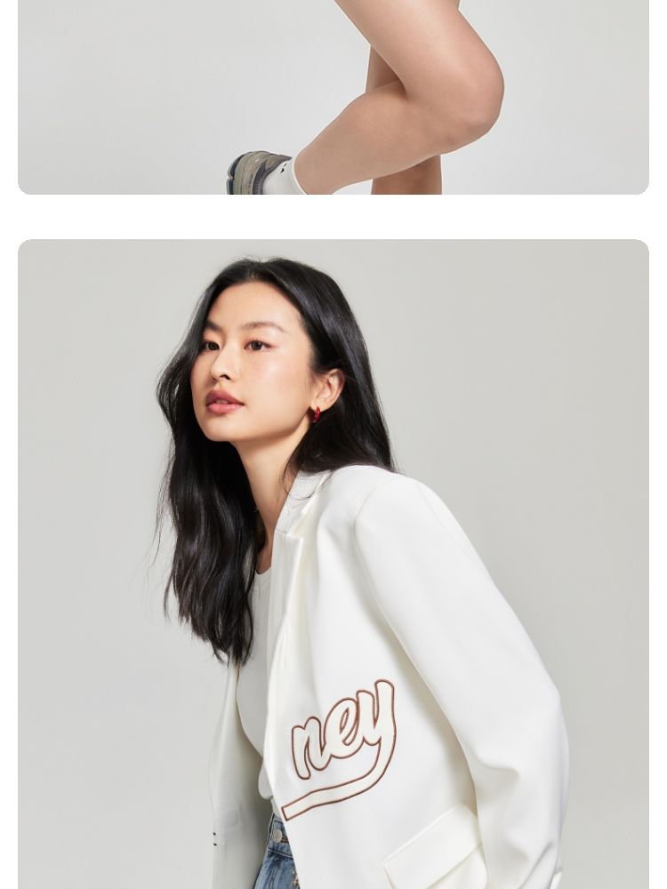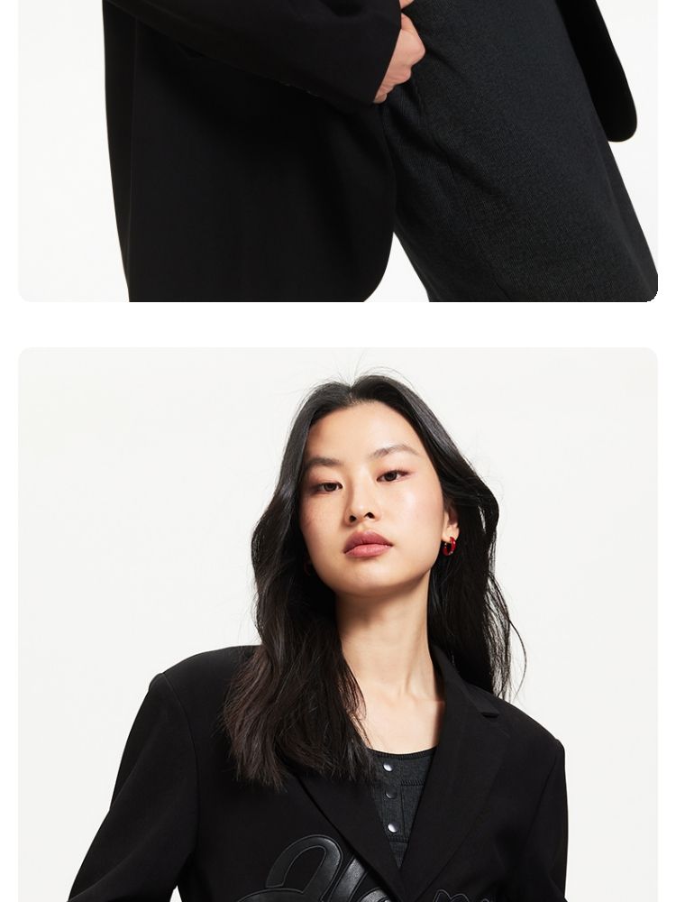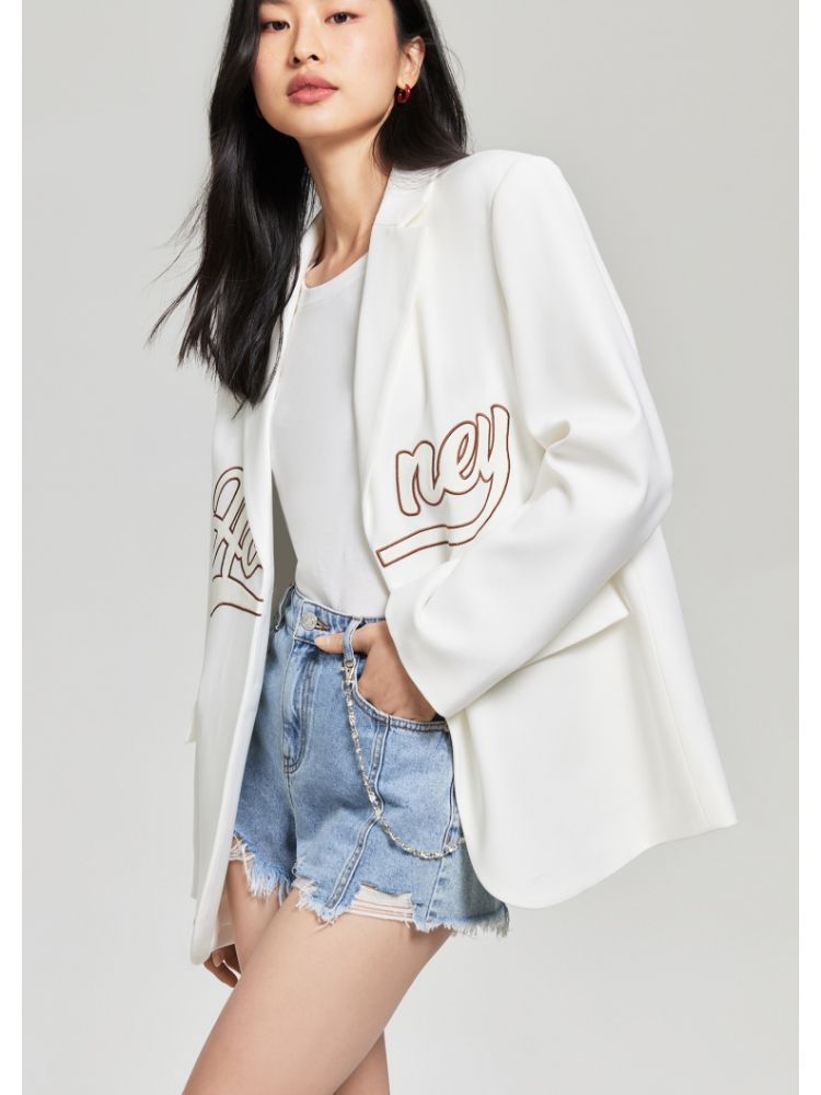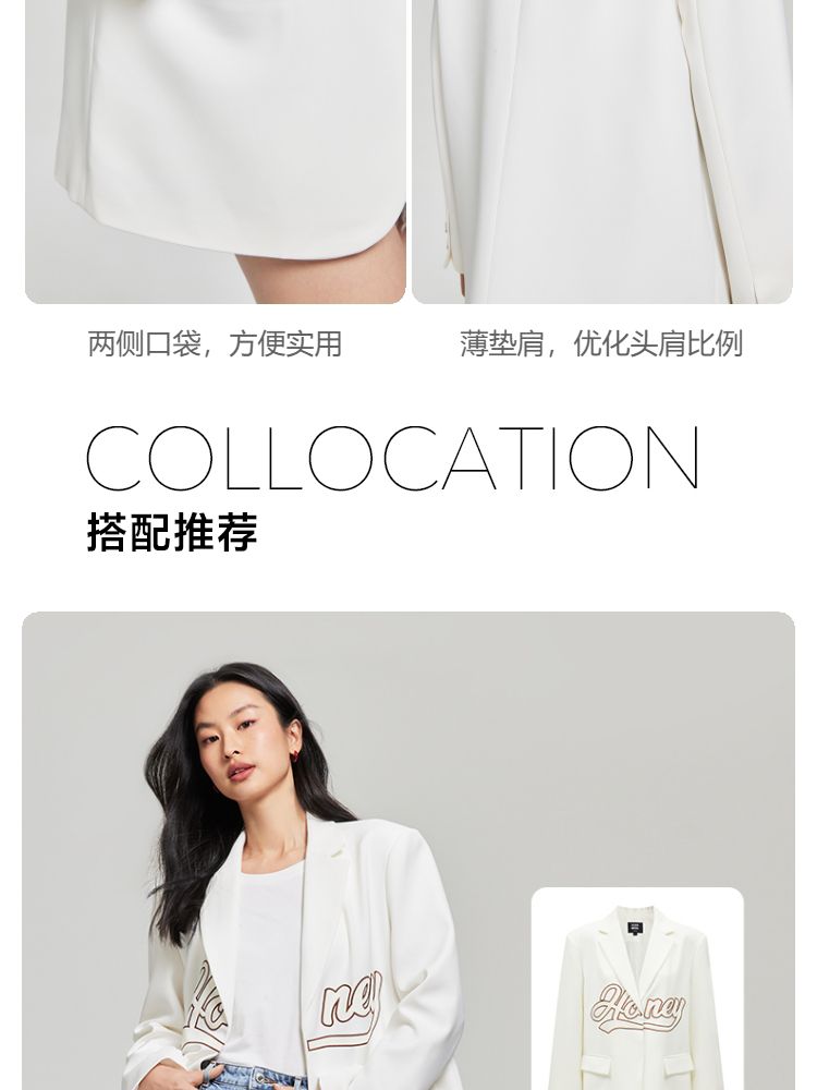 商品名称:【磁吸两粒扣】宽松翻领字母图案简约百搭西装外套女 325137