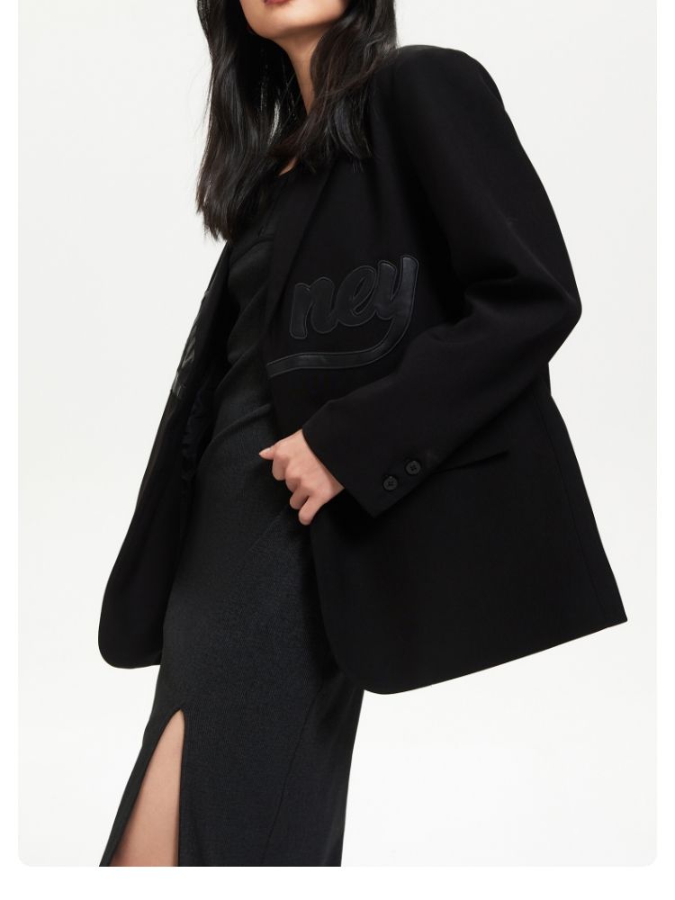 【磁吸两粒扣】宽松翻领字母图案简约百搭西装外套女 325137