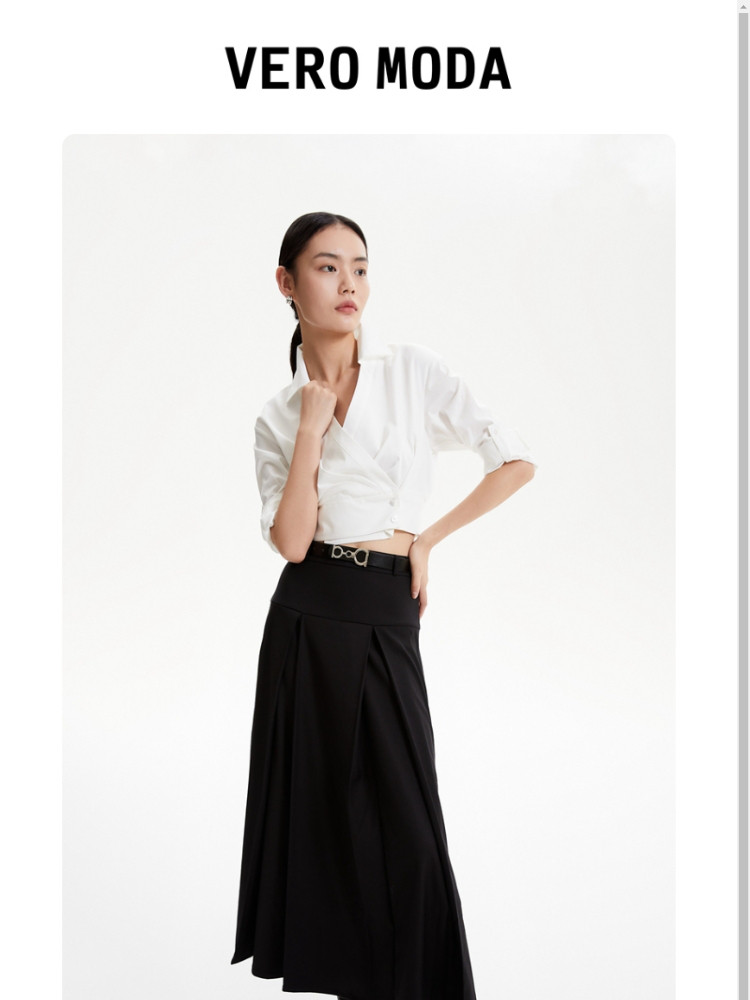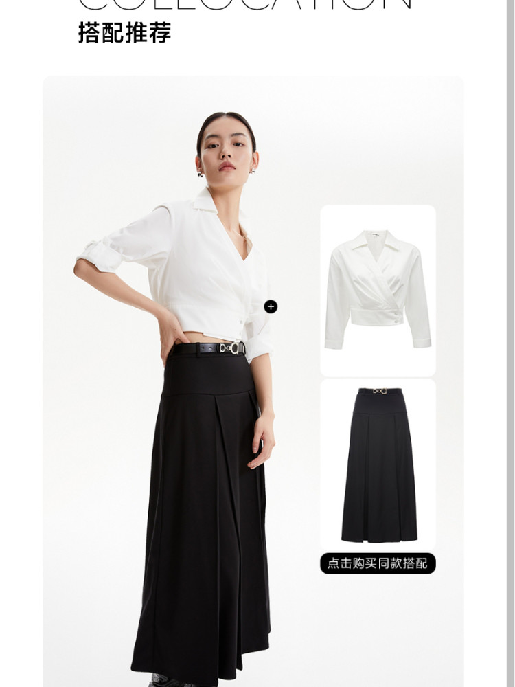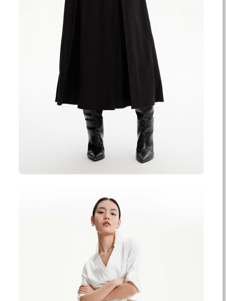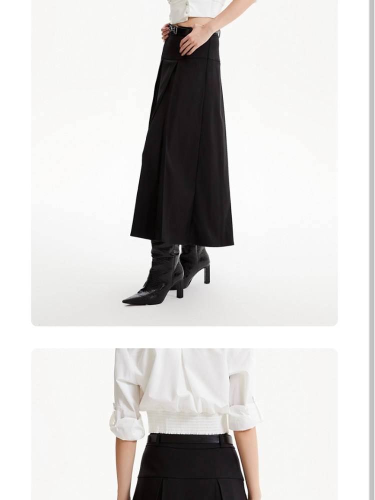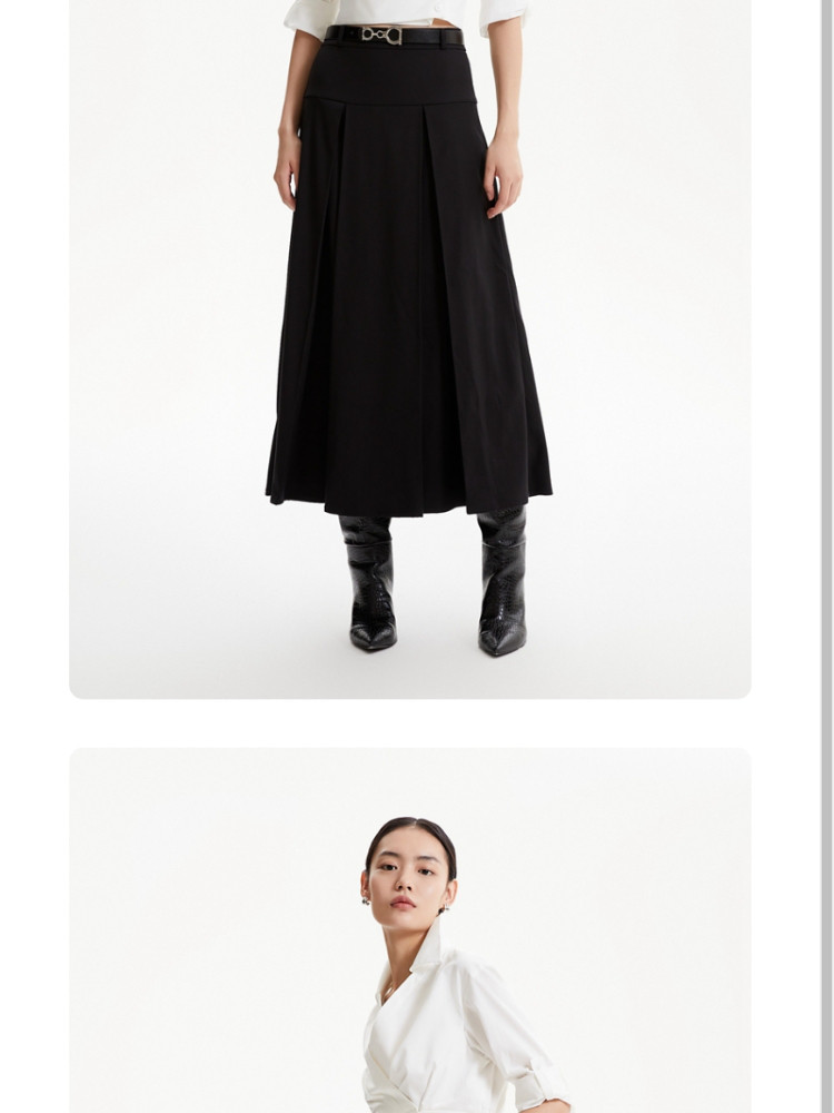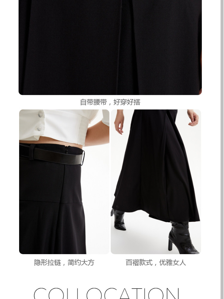 商品名称:半裙优雅气质通勤黑色自带腰带百褶长裙女 686673