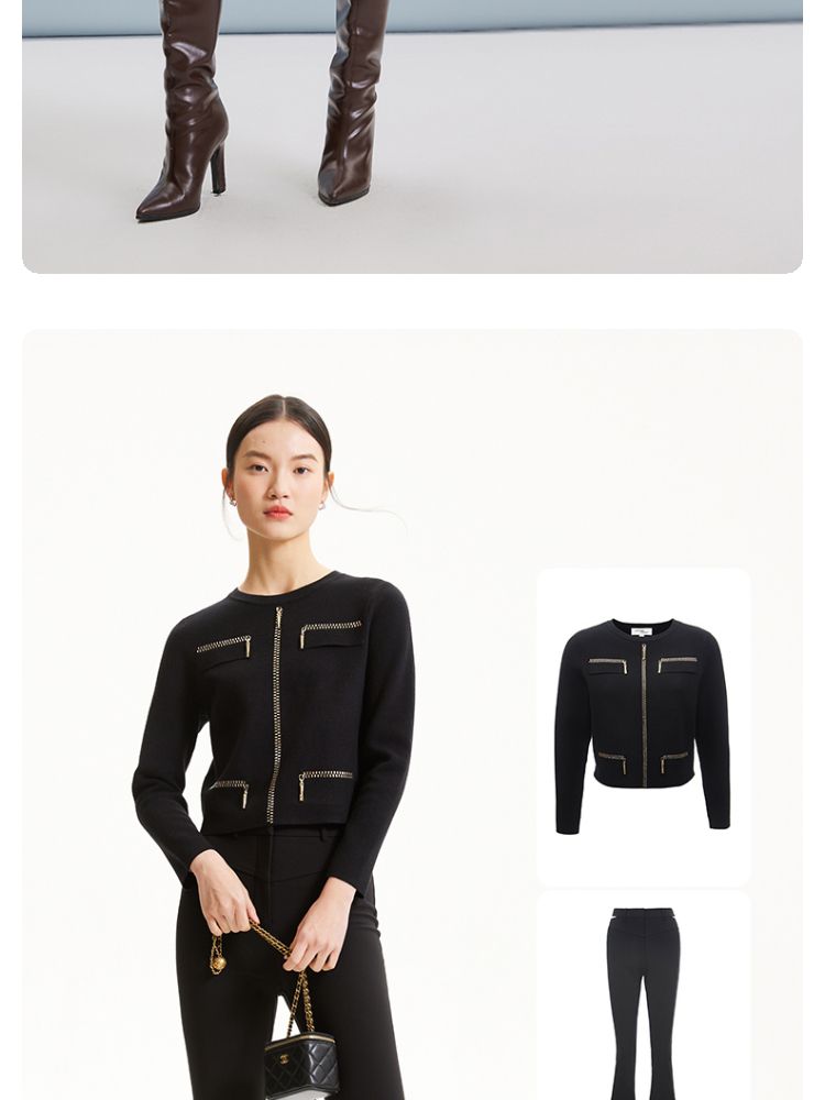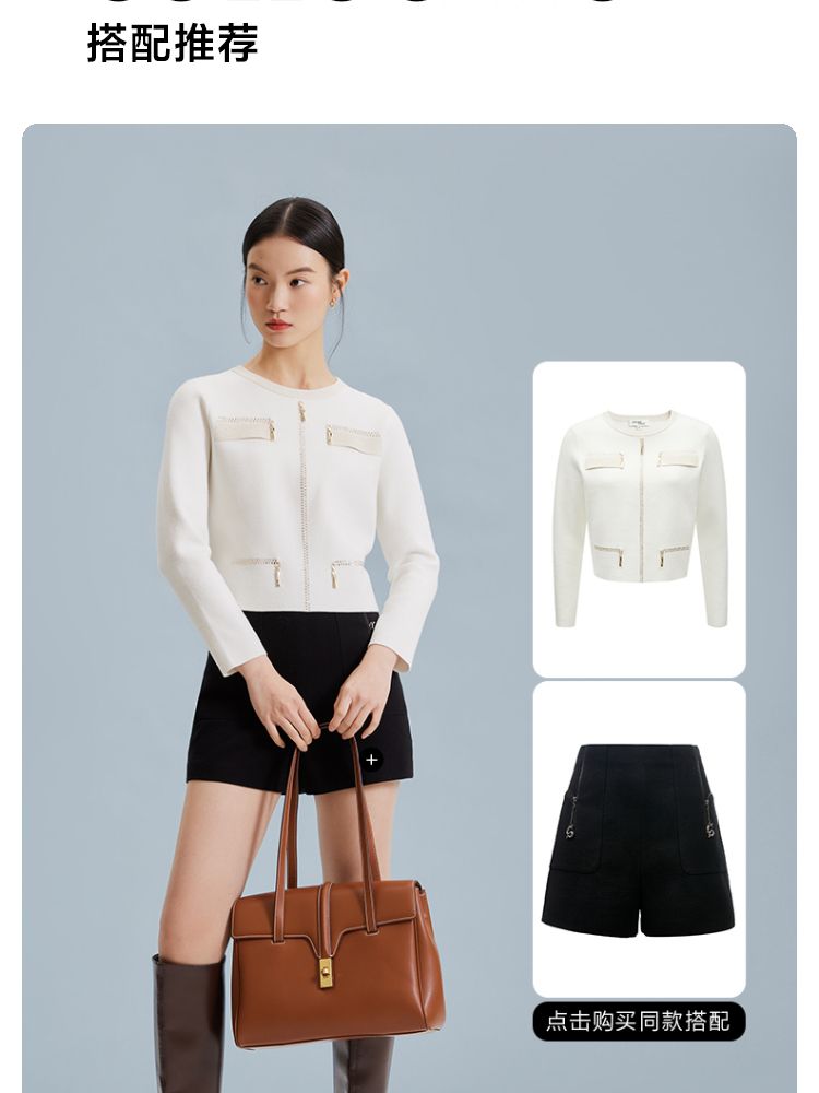 商品名称:【小香风】针织衫女圆领直筒短款套头通勤简约优雅 300369